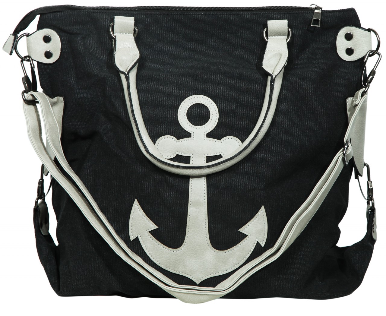 A bolsa de ombro marítima é feita de tecido. É decorado na frente com um motivo de âncora que, assim como as alças e os elementos individuais, é feito de imitação de couro. A bolsa é a companheira perfeita para o dia a dia, mas também para sair à noite, pois tem muito espaço de arrumação e numerosos compartimentos. Devido ao seu tamanho ideal, pode ser usado perfeitamente ao ombro ou a tiracolo, pois possui outra alça removível e ajustável que pode ser ajustada a um comprimento total máximo de aproximadamente 120 cm. O compartimento principal pode ser aberto ou fechado com zíper. O interior da bolsa oferece outras opções de armazenamento, onde há outro compartimento menor com zíper e dois bolsos para celular. Há também um compartimento com zíper externo. A bolsa estilosa é versátil e moderna e pode ser usada em muitas ocasiões. Além disso, não é apenas o design que impressiona, mas também a capacidade de armazenar todos os itens importantes. Seja para um passeio, compras ou uma viagem – com esta bolsa você terá a companhia ideal feita de materiais insensíveis e duráveis. O tamanho do saco vazio é de 40 cm de comprimento, 42 cm de largura e 3,5 cm de espessura.