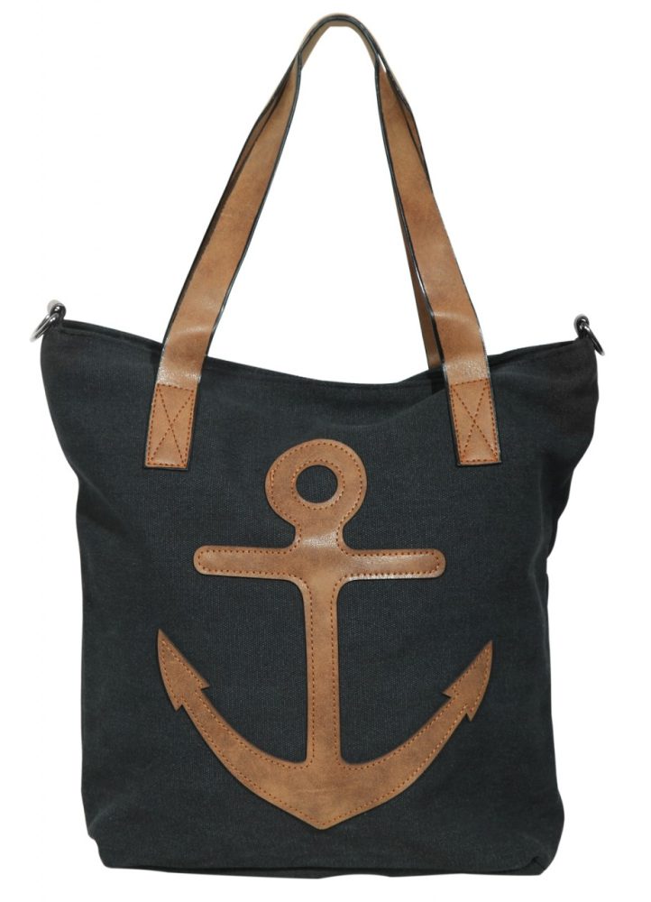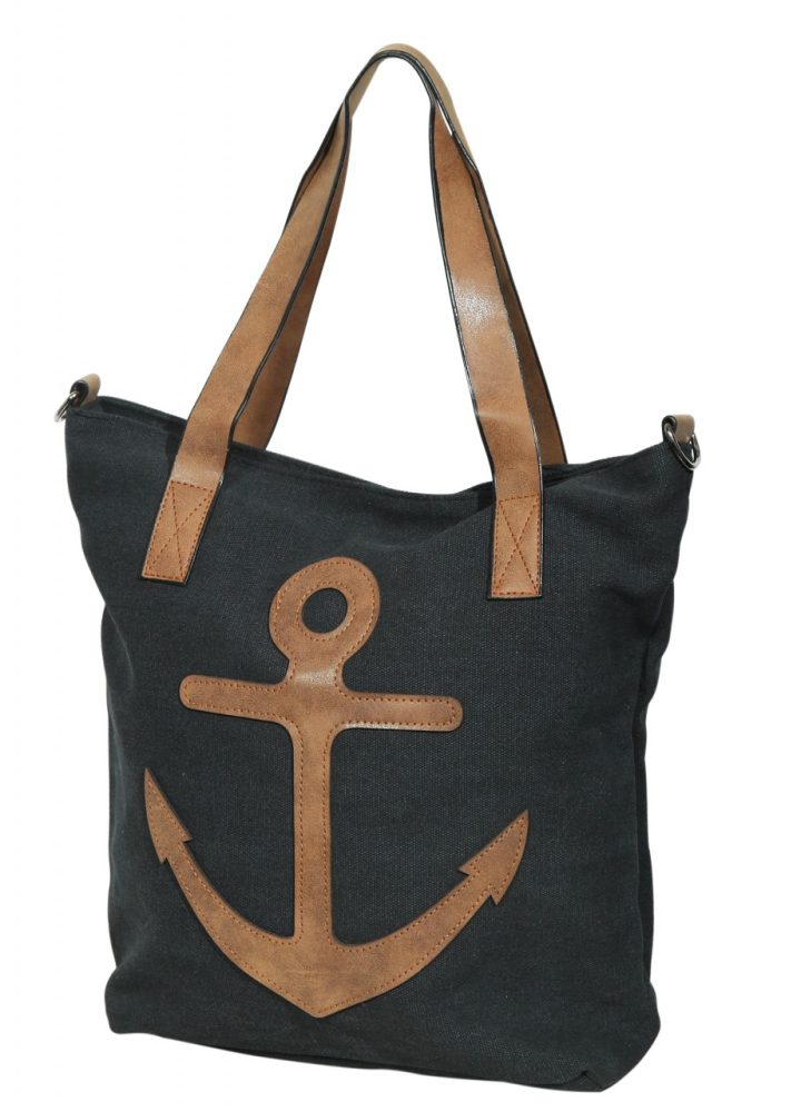 A bolsa de ombro marítima é feita de tecido. É decorado na frente com um motivo de âncora que, assim como as alças e os elementos individuais, é feito de imitação de couro. A bolsa é a companheira perfeita para o dia a dia, mas também para sair à noite, pois tem muito espaço de arrumação e numerosos compartimentos. Devido ao seu tamanho ideal, pode ser usado perfeitamente ao ombro ou a tiracolo, pois possui outra alça removível e ajustável que pode ser ajustada a um comprimento total máximo de aproximadamente 125 cm. O compartimento principal pode ser aberto ou fechado com zíper. O interior da bolsa oferece outras opções de armazenamento, onde há outro compartimento menor com zíper e dois bolsos para celular. Há também um compartimento com zíper externo.