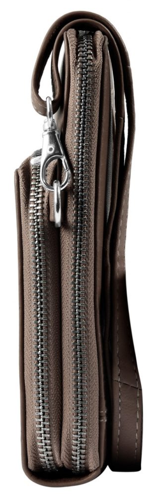 A compacta bolsa de ombro para telemóvel, incluindo uma mini carteira adicional, é feita de pele e está disponível em várias cores da moda. É ideal para muitas atividades de lazer e pode substituir o incômodo de carregar uma bolsa grande. Apesar do seu tamanho compacto, oferece espaço de armazenamento suficiente para guardar tudo o que é importante de forma clara e segura. Possui um grande compartimento com zíper, que se divide em dois compartimentos na parte interna e oferece espaço para dois cartões. O compartimento com zíper na frente oferece opções de armazenamento adicionais. O compartimento contém ainda uma mini carteira, também confeccionada em pele.O tamanho da bolsa de ombro para telemóvel é 19,5 cm de comprimento, 12 cm de largura e 4 cm de espessura quando vazia. A alça também é feita de pele e tem comprimento máximo de 145 cm, e é ajustável e removível.