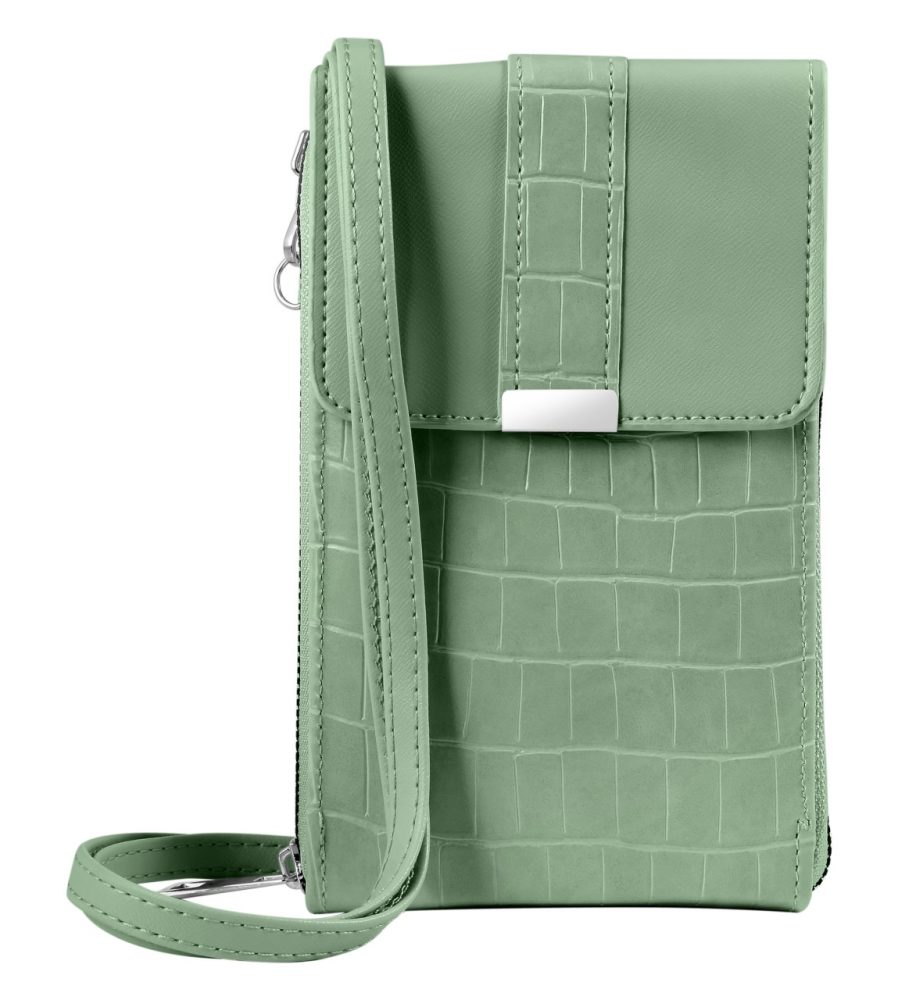 A bolsa de ombro compacta para telemóvel está disponível em várias cores da moda. É ideal para muitas atividades de lazer e pode substituir o incômodo de carregar uma bolsa grande. Apesar do seu tamanho compacto, oferece espaço de armazenamento suficiente para guardar tudo o que é importante de forma clara e segura. O tamanho da bolsa de ombro para telemóvel é 17,5 cm de comprimento, 11 cm de largura e 3 cm de espessura quando vazia. A alça também é feita de pele sintético e tem comprimento máximo de 125 cm. Pode ser ajustável e removível.