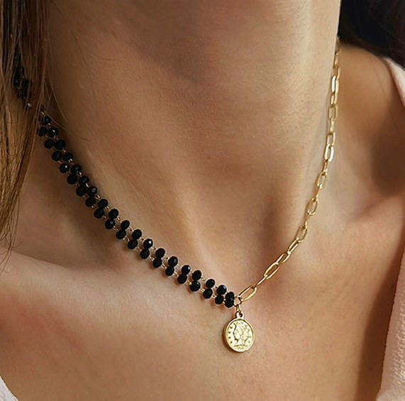 Confeccionado em aço cirúrgico, um metal altamente valorizado na joalheria, este colar destaca-se pela sua resistência, durabilidade e brilho impecável.