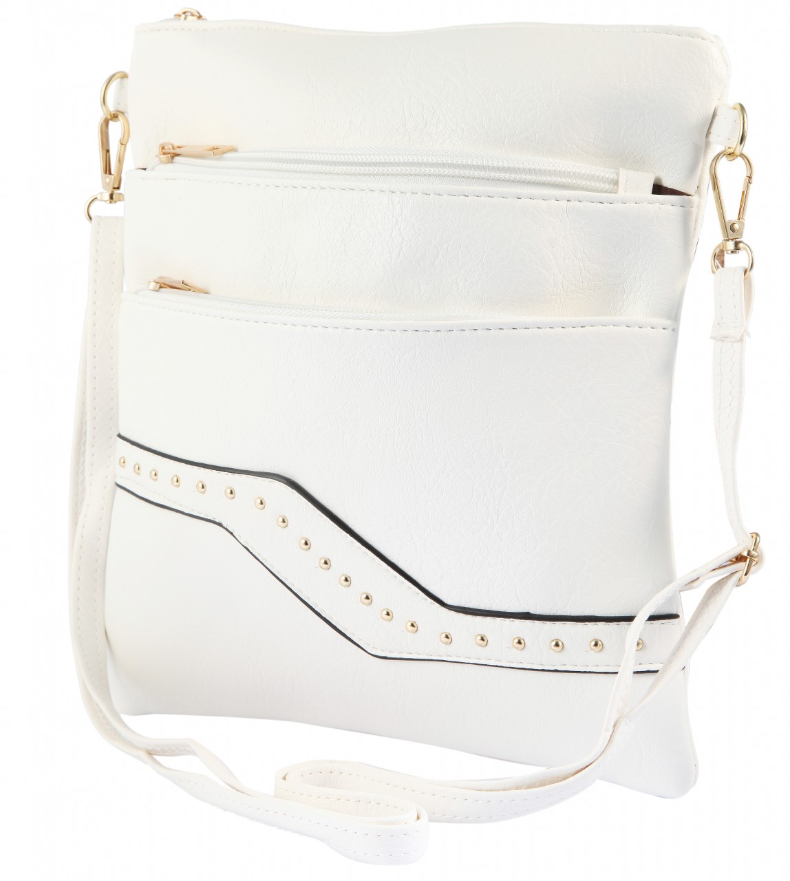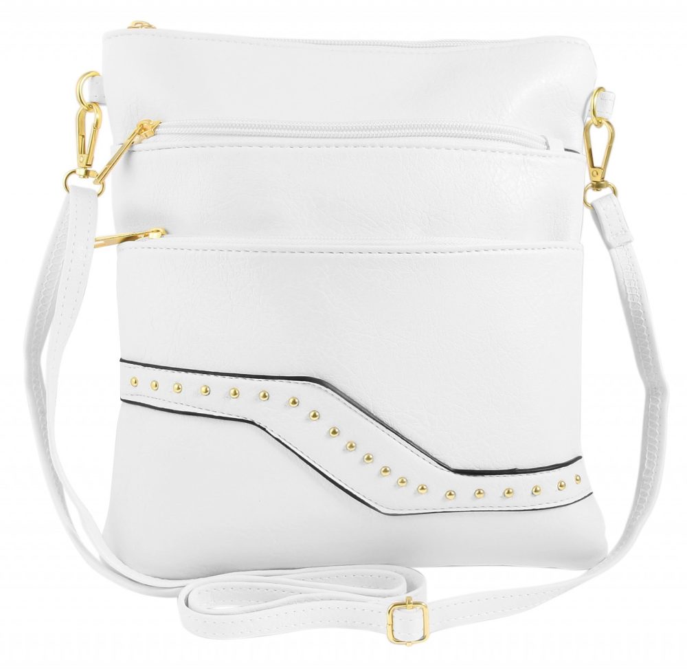 A moderna bolsa crossbody é confeccionada em imitação de couro robusto e impressiona pelo acabamento estruturado e pelos numerosos rebites de metal que decoram a superfície da bolsa. Possui também uma alça de transporte longa e removível que pode ser estendida até um comprimento máximo de aproximadamente 150 cm. Os dois compartimentos externos, bem como o compartimento traseiro, podem ser operados com zíper. A bolsa também inclui um grande compartimento interno, que também é fechado com zíper. A bolsa estilosa é versátil e moderna e pode ser usada em muitas ocasiões. Além disso, não é apenas o design que impressiona, mas também a capacidade de armazenar todos os itens importantes.