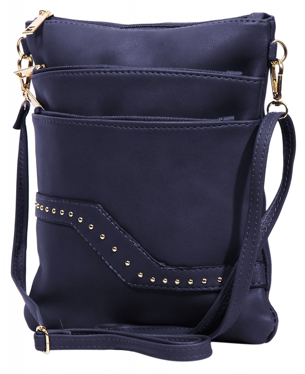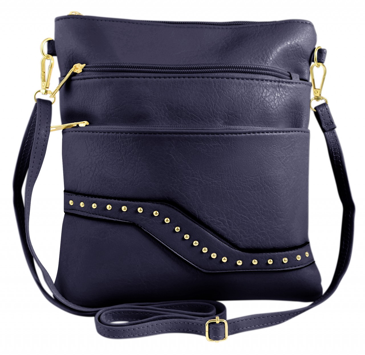 A moderna bolsa crossbody é confeccionada em imitação de couro robusto e impressiona pelo acabamento estruturado e pelos numerosos rebites de metal que decoram a superfície da bolsa. Possui também uma alça de transporte longa e removível que pode ser estendida até um comprimento máximo de aproximadamente 150 cm. Os dois compartimentos externos, bem como o compartimento traseiro, podem ser operados com zíper. A bolsa também inclui um grande compartimento interno, que também é fechado com zíper. A bolsa estilosa é versátil e moderna e pode ser usada em muitas ocasiões. Além disso, não é apenas o design que impressiona, mas também a capacidade de armazenar todos os itens importantes.