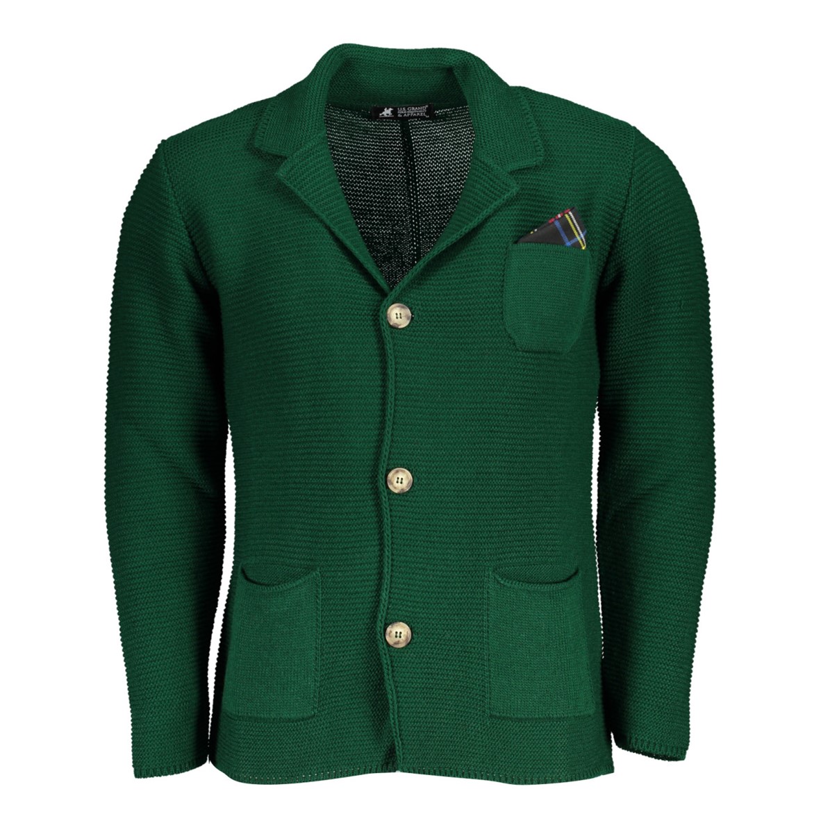 Cardigan, 2 bolsos, 1 bolso pequeno, 3 botões, logótipo.