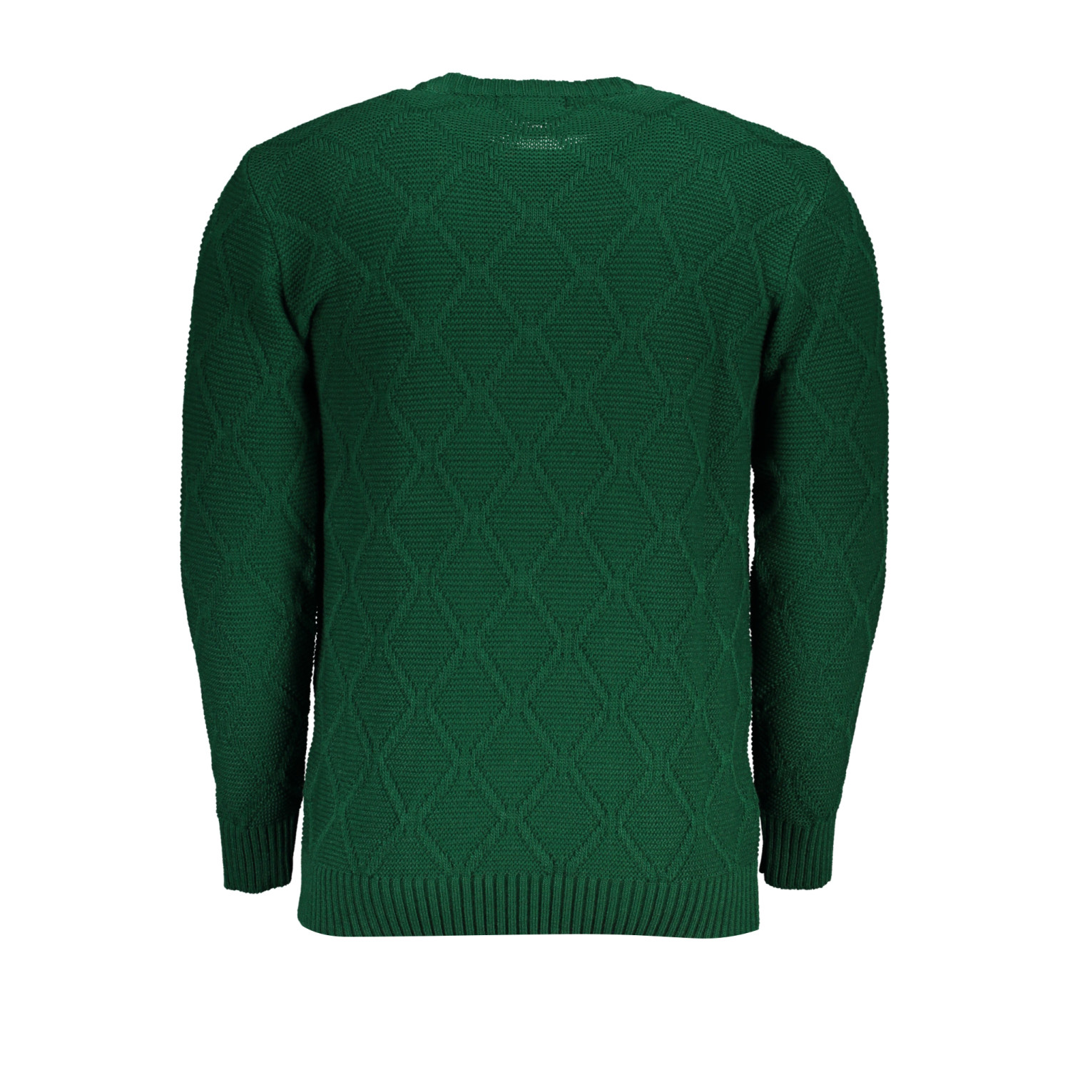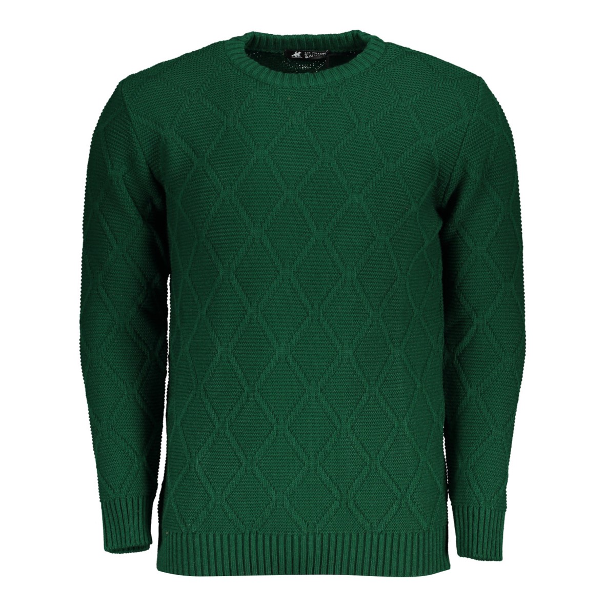 Suéter de manga comprida, gola redonda, padrão diamante, logótipo.