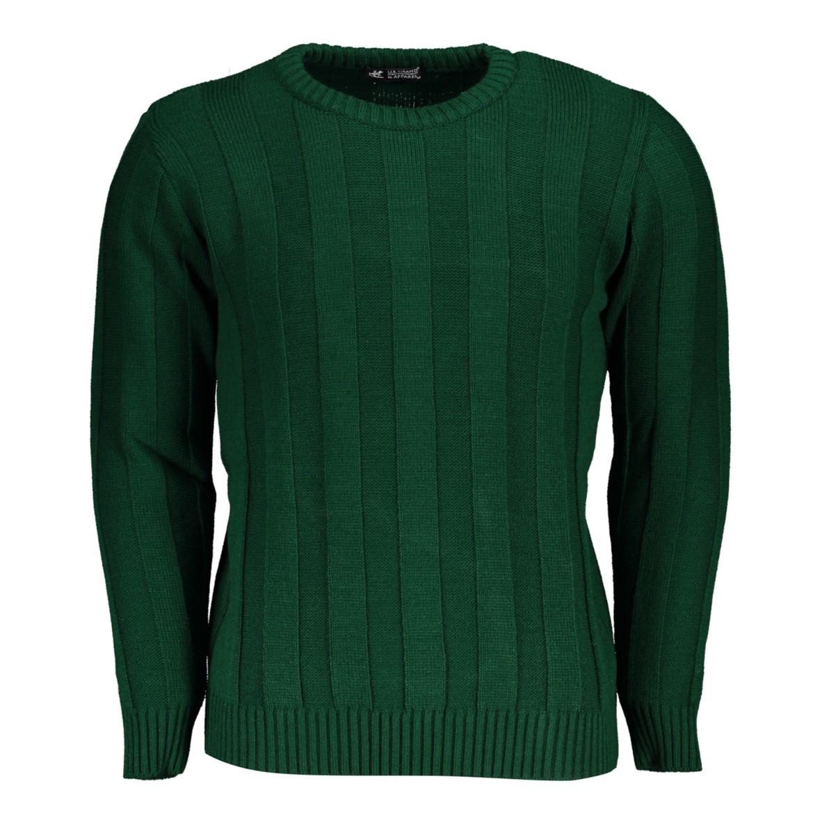 Suéter de manga comprida, gola redonda, detalhes contrastantes, logótipo.