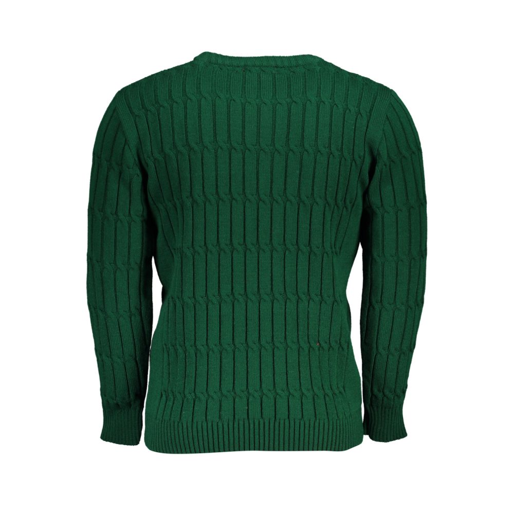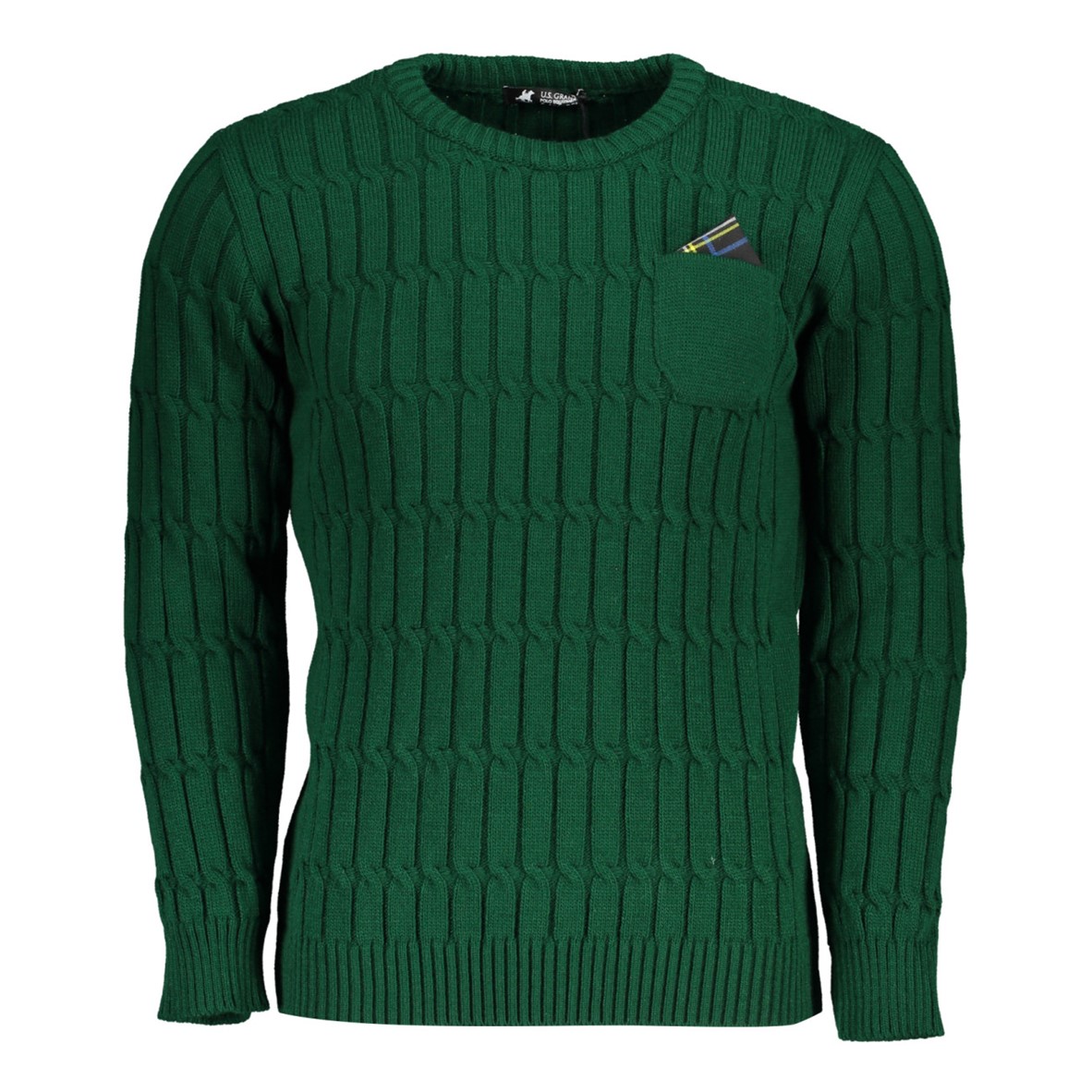 Suéter de manga comprida, gola redonda, bolso, detalhes contrastantes, logótipo.