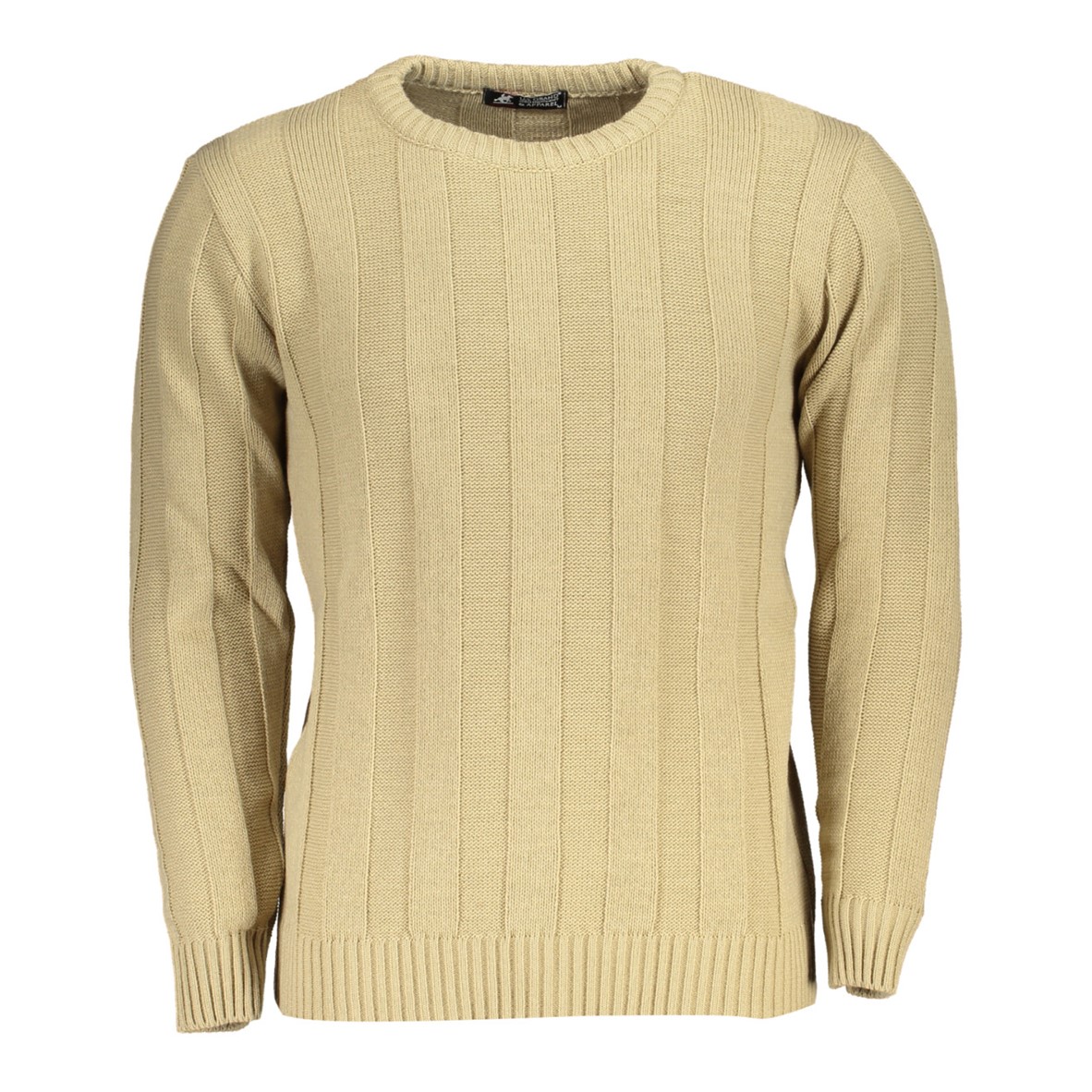 Suéter de manga comprida, gola redonda, detalhes contrastantes, logótipo.