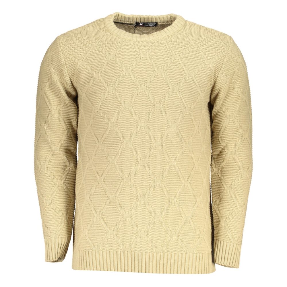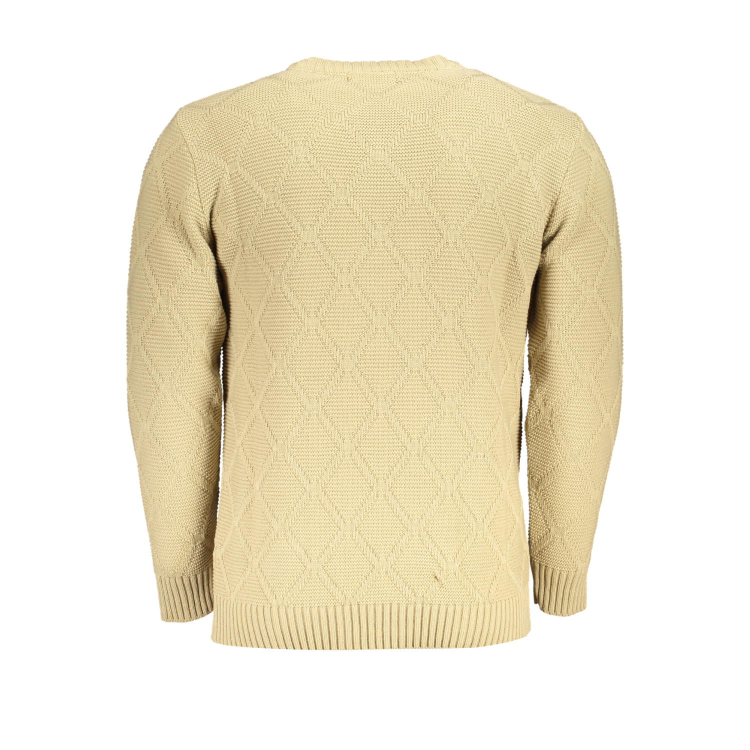 Suéter de manga comprida, gola redonda, padrão diamante, logótipo.