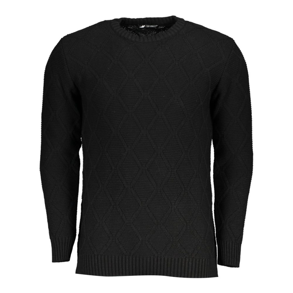Suéter de manga comprida, gola redonda, padrão diamante, logótipo.