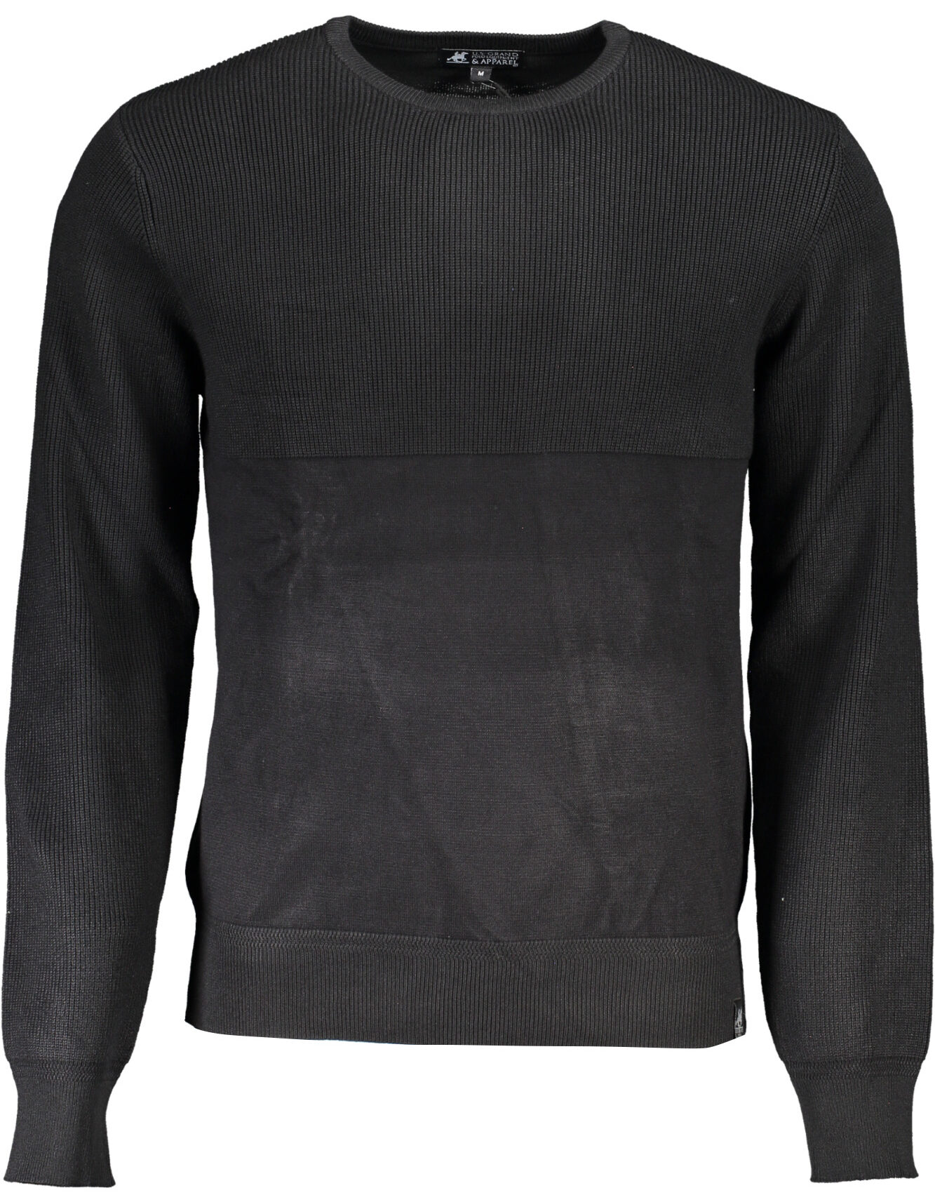 Suéter de manga comprida, gola redonda, detalhes contrastados, logotipo