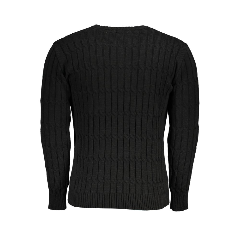 Suéter de manga comprida, gola redonda, bolso, detalhes contrastantes, logótipo.