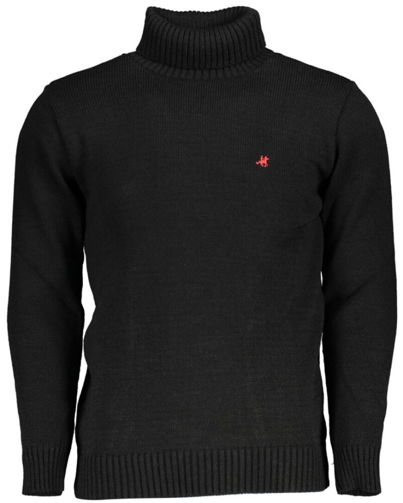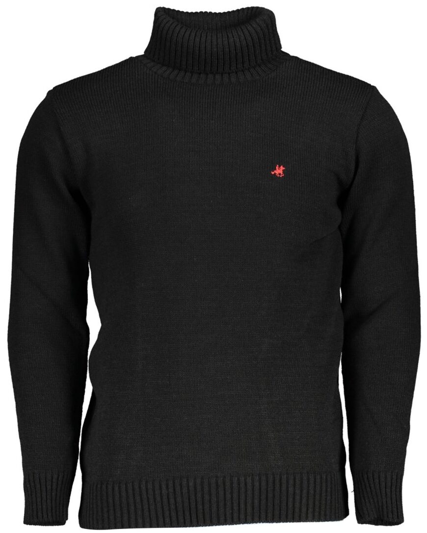 Camisola de manga comprida, gola alta, bordada, logótipo.