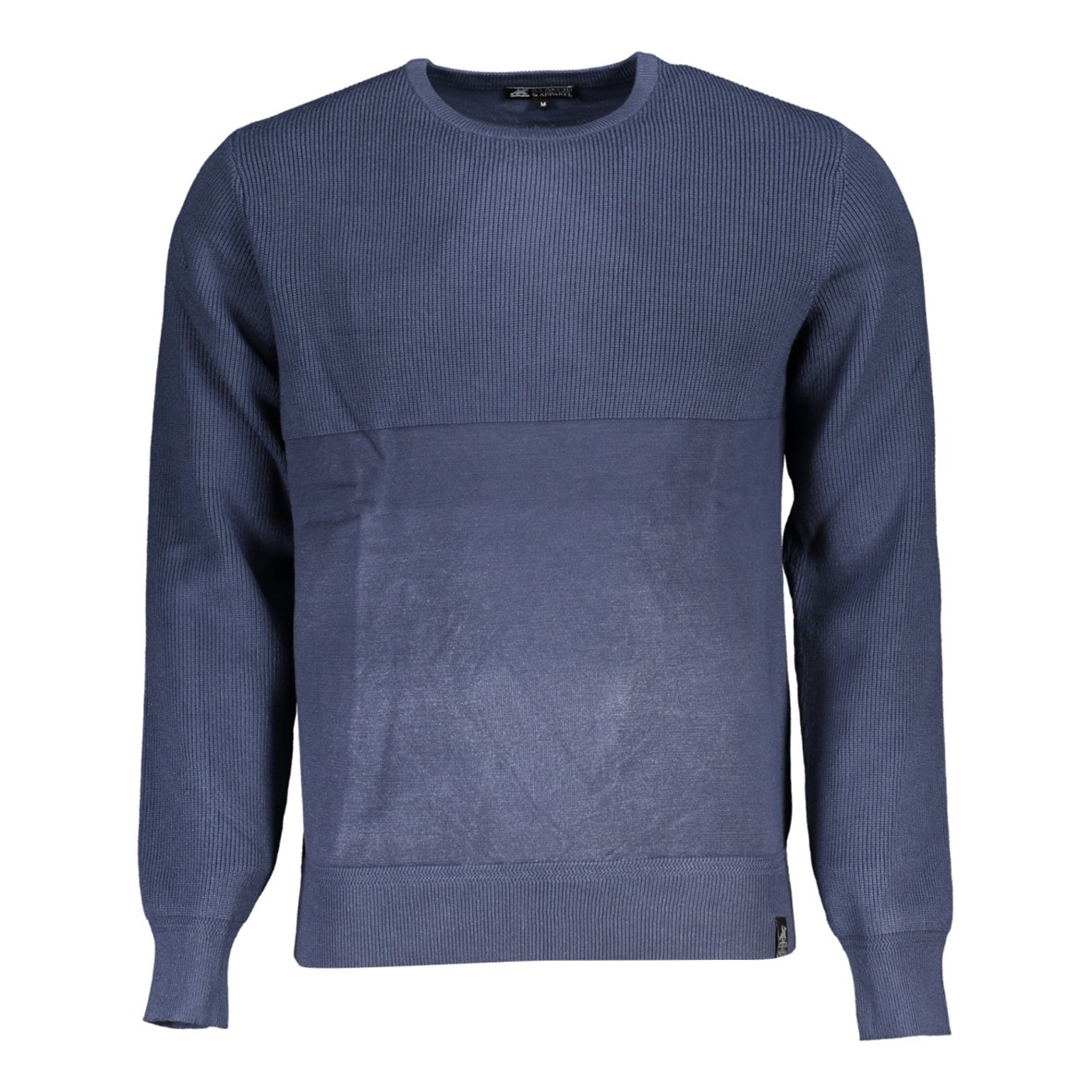 Suéter de manga comprida, gola redonda, detalhes contrastantes, logótipo.