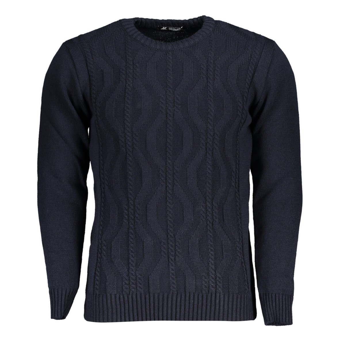 Suéter de manga comprida, gola redonda, detalhes contrastantes, logótipo.