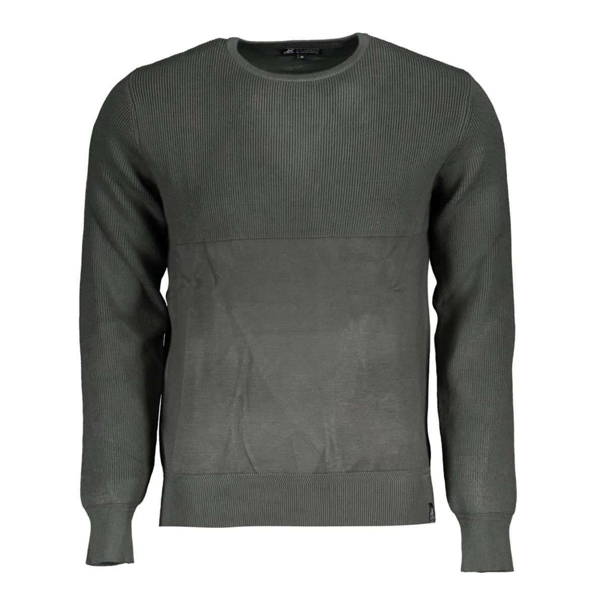 Suéter de manga comprida, gola redonda, detalhes contrastantes, logótipo.