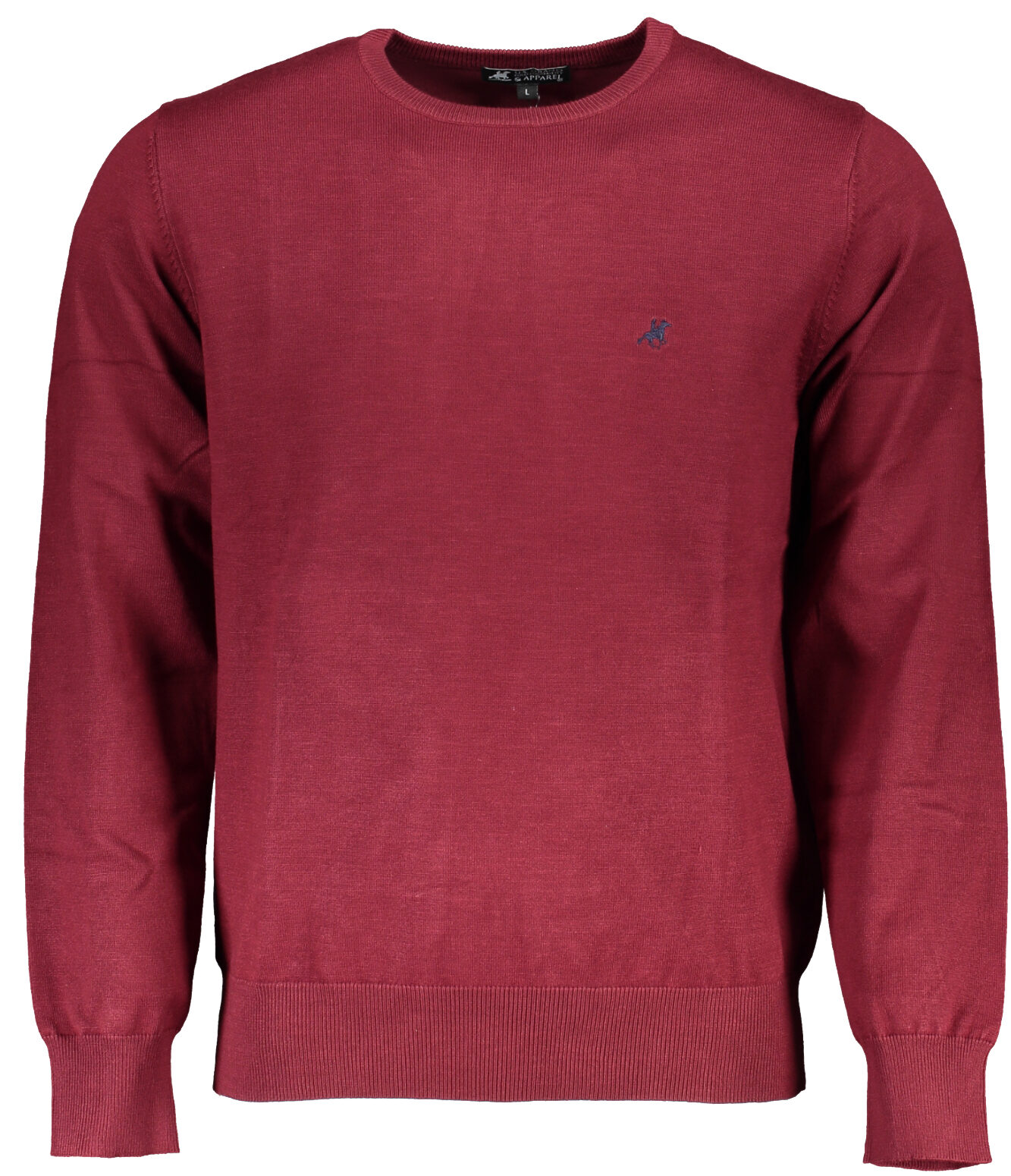 Suéter de manga longa, gola redonda, detalhes contrastados, logotipo bordado