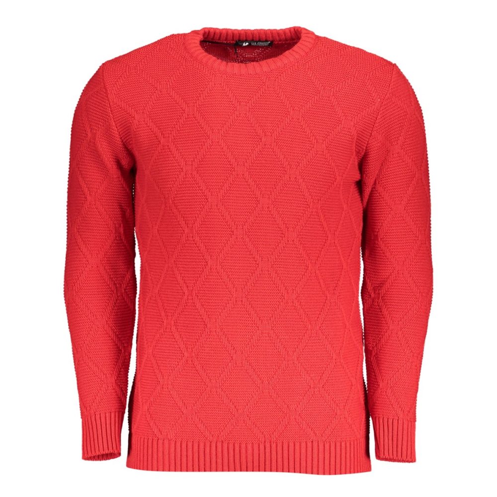 Suéter de manga comprida, gola redonda, padrão diamante, logótipo.
