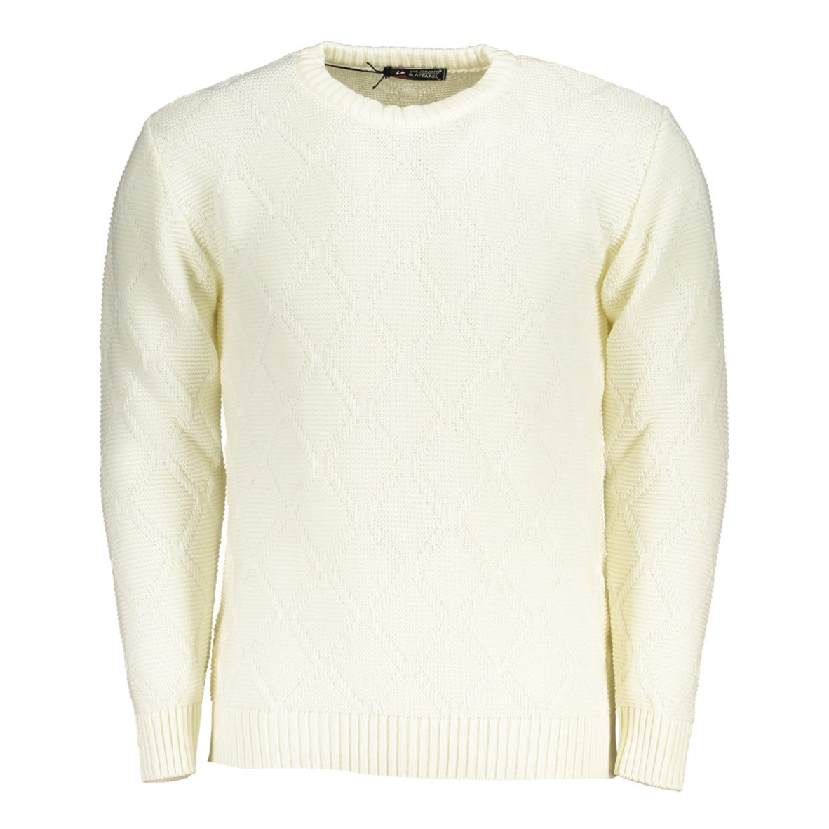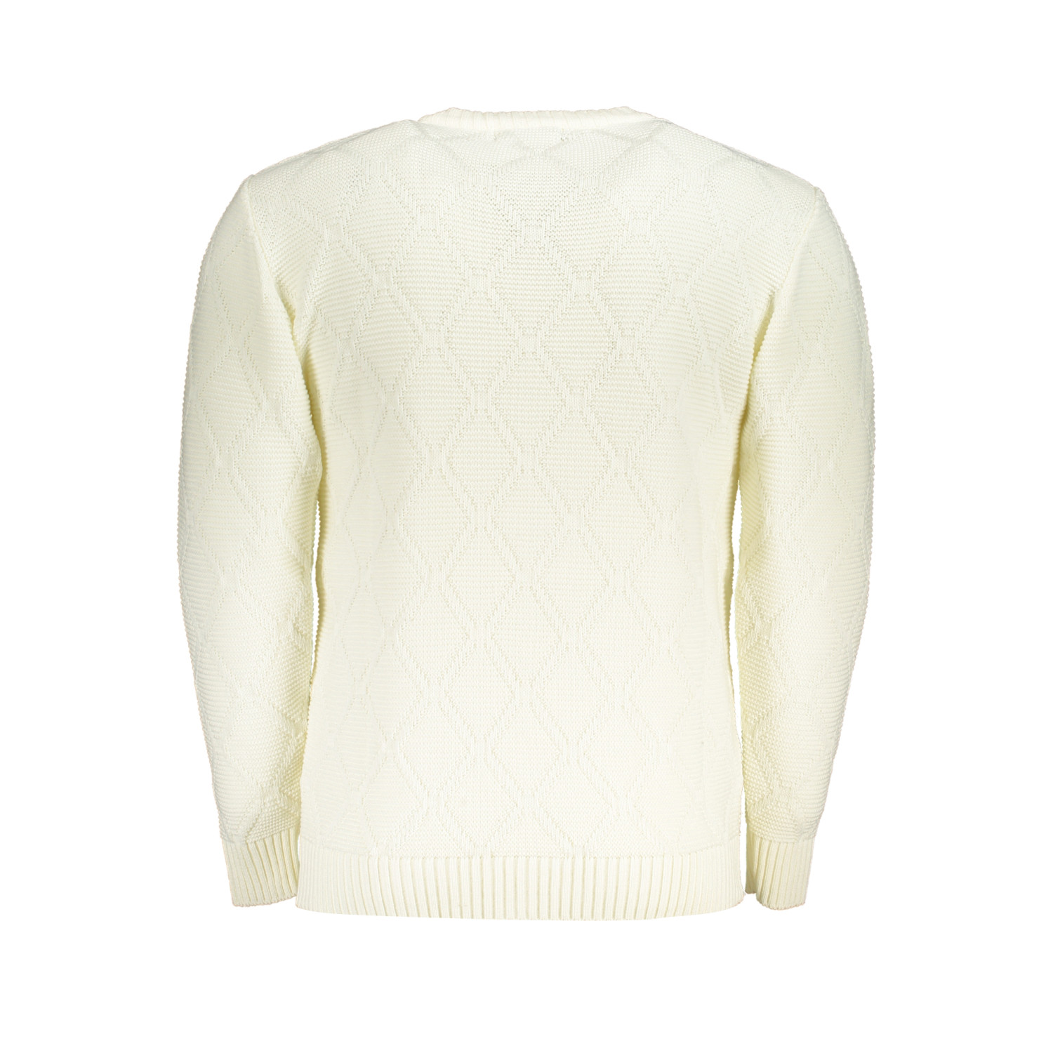 Suéter de manga comprida, gola redonda, padrão diamante, logótipo.