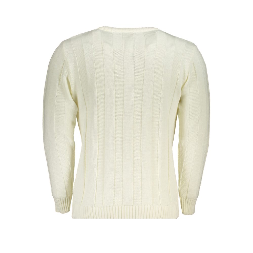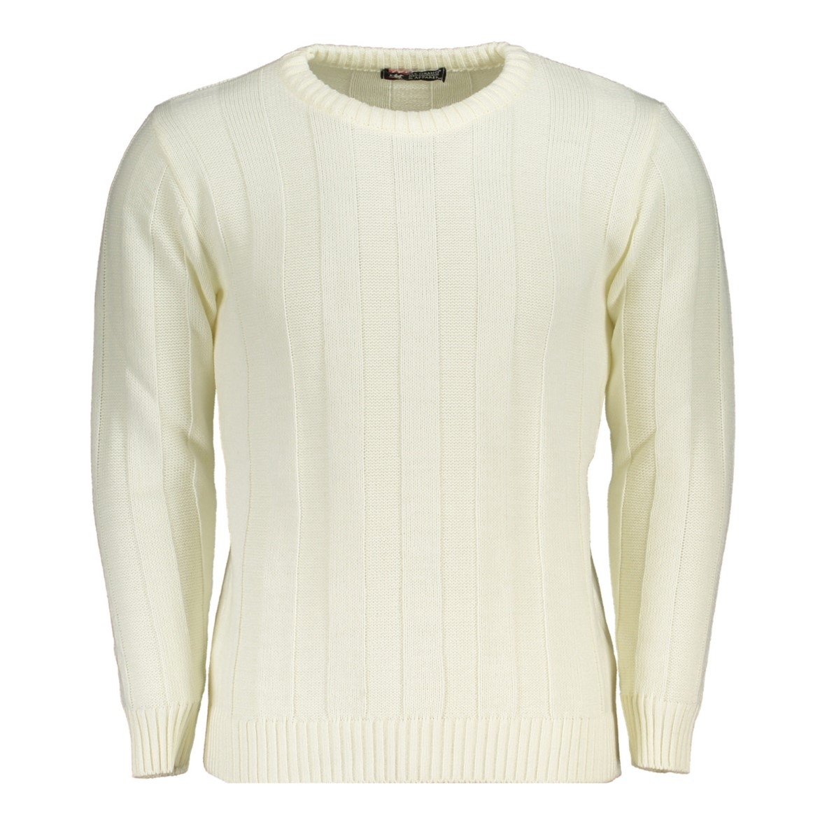 Suéter de manga comprida, gola redonda, detalhes contrastantes, logótipo.