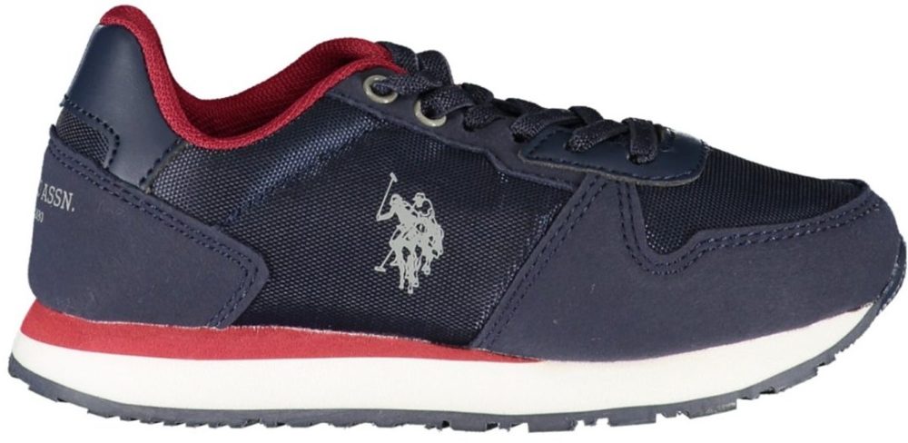 Calçado desportivo com atacadores, detalhes contrastantes, estampa, logótipo.