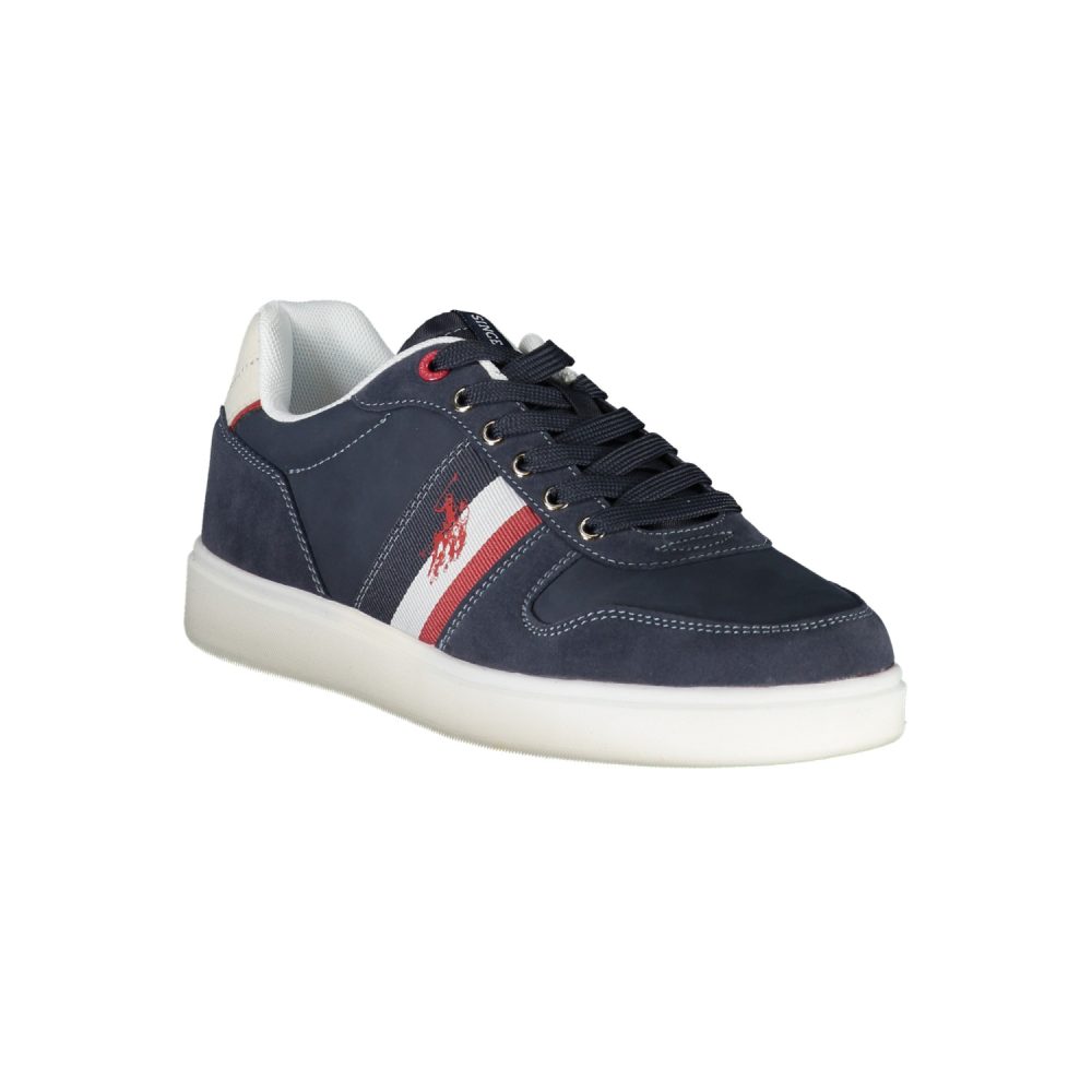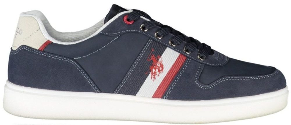 Calçado desportivo com atacadores, detalhes contrastantes, estampa, logótipo.