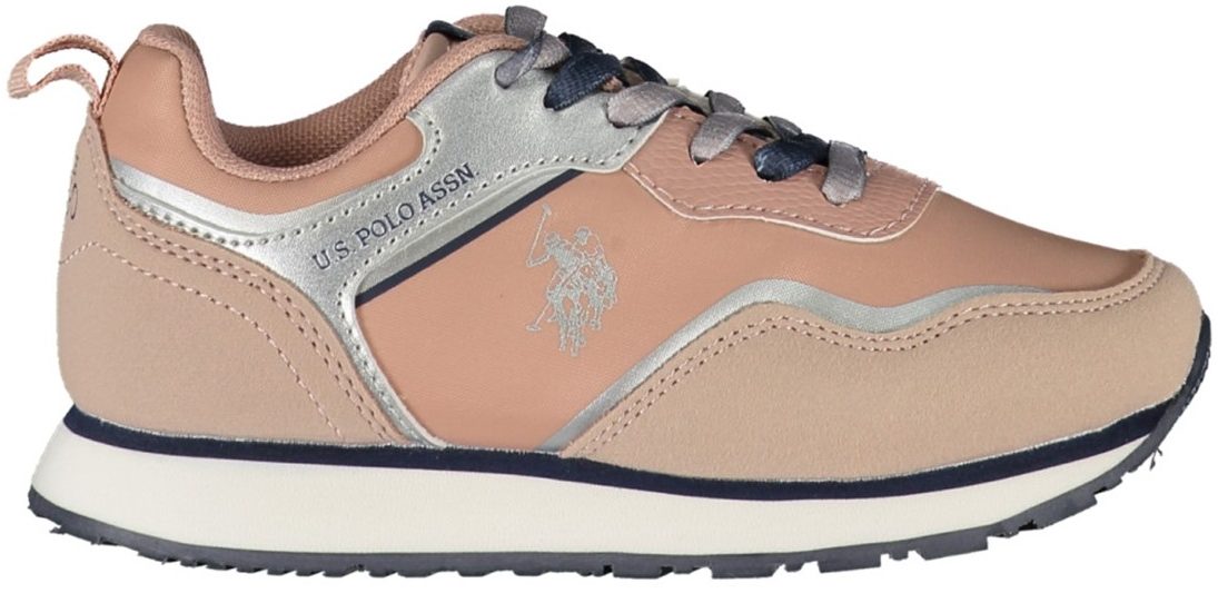 Calçado desportivo com atacadores, detalhes contrastantes, estampa, logótipo.