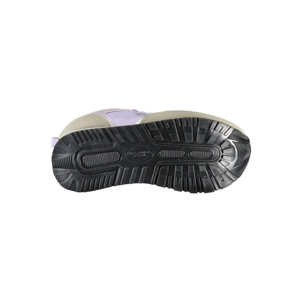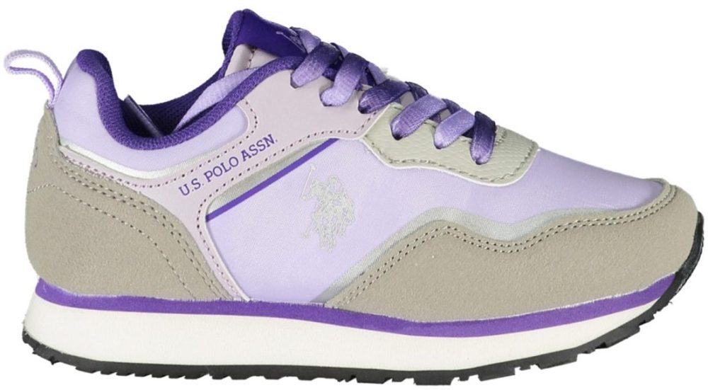 Calçado desportivo com atacadores, detalhes contrastantes, estampa, logótipo.