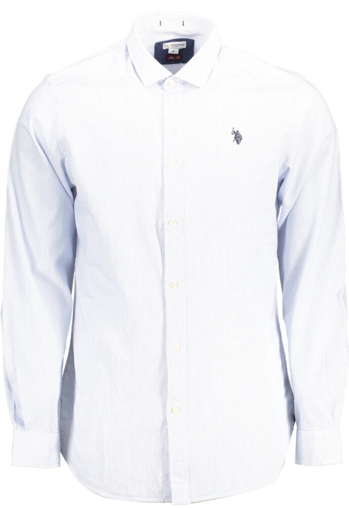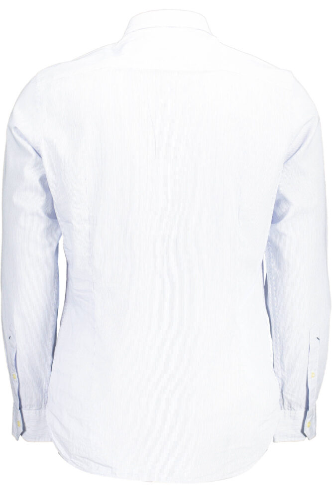 camisa de manga comprida, corte justo, gola francesa, punhos com 1 botão, bordados, botões, logótipo