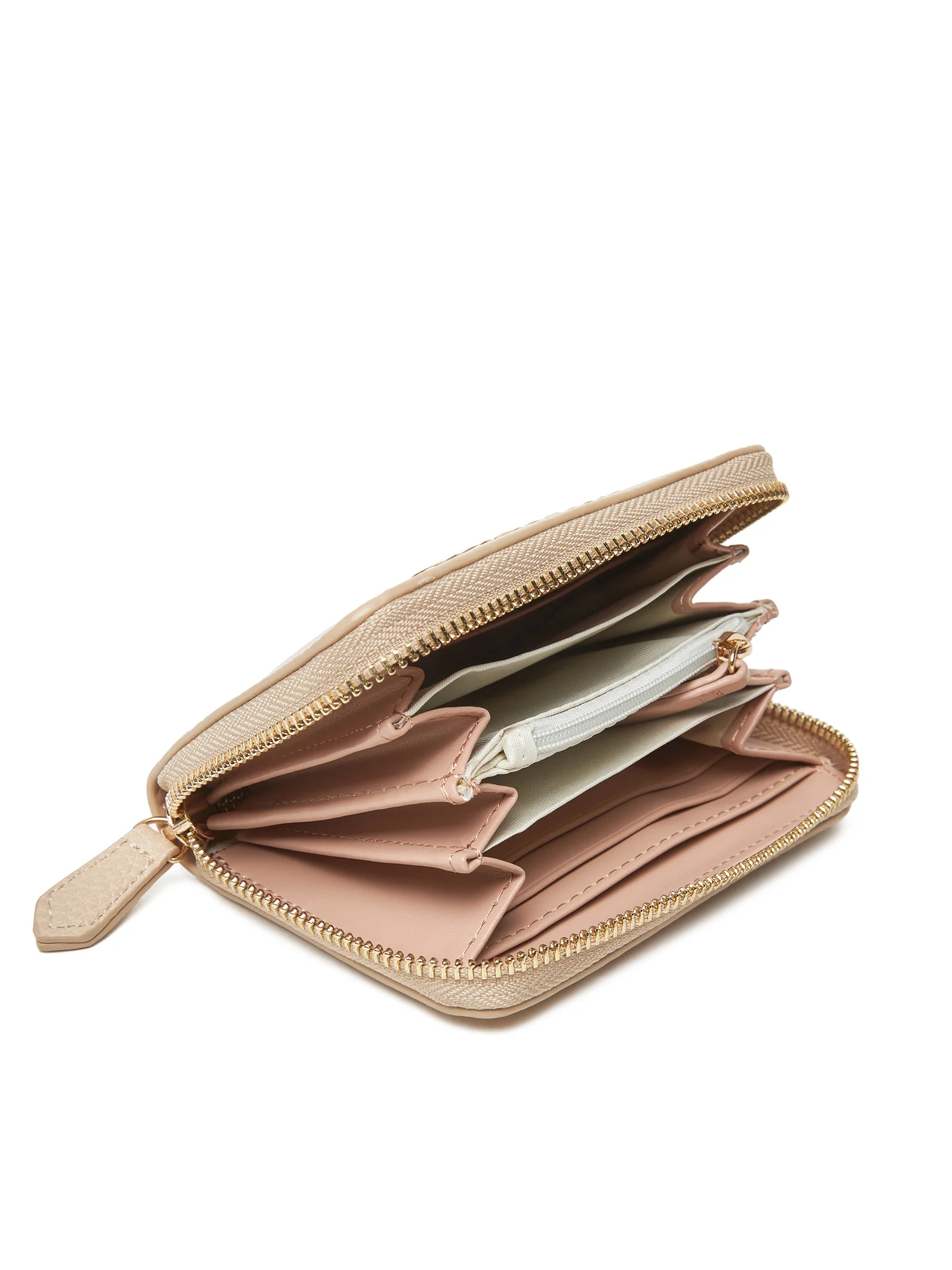 Carteira prática e elegante com seis compartimentos, porta-moedas e espaços duplos para cartões.