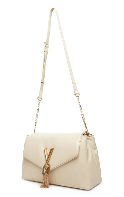 Mala de ombro ajustável com dois compartimentos e um bolso interior.