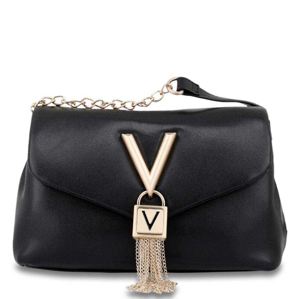 Mala de ombro ajustável com dois compartimentos e dois bolsos interiores.