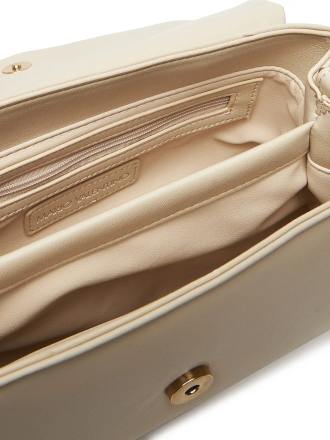 Mala de ombro ajustável com dois compartimentos e dois bolsos interiores.