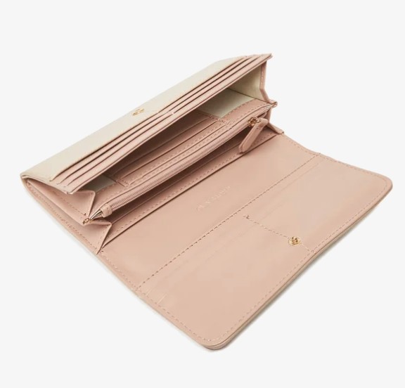 Carteira com 4 compartimentos, porta-moedas e espaços interiores para cartões, confeccionada em 100% poliuretano, oferecendo praticidade, resistência e um toque elegante.