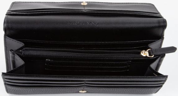 A carteira possui 4 compartimentos, porta-moedas, e compartimentos duplos para cartões, garantindo organização completa dos seus itens essenciais. O sistema de fecho duplo — correr e pressão —