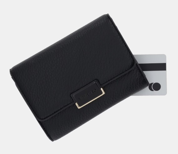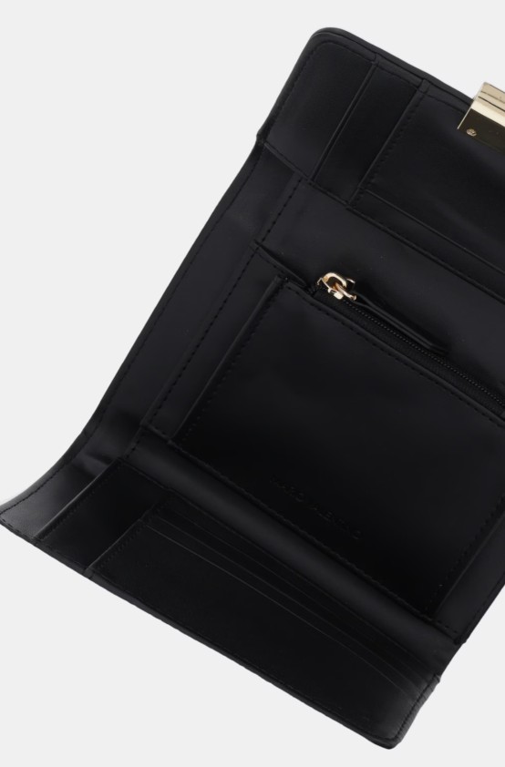 Carteira prática com 3 compartimentos, porta-moedas e vários espaços para cartões.