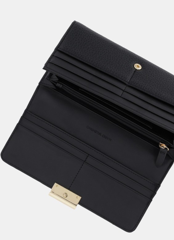 Carteira prática com 2 compartimentos, porta-moedas e dois espaços para cartões.