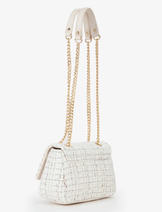 Possui 2 alças em corrente, que adicionam um toque sofisticado e contemporâneo ao visual.