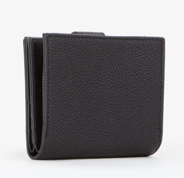 Conta com porta-moedas, compartimentos duplos para cartões e divisão interna prática para guardar notas e documentos.