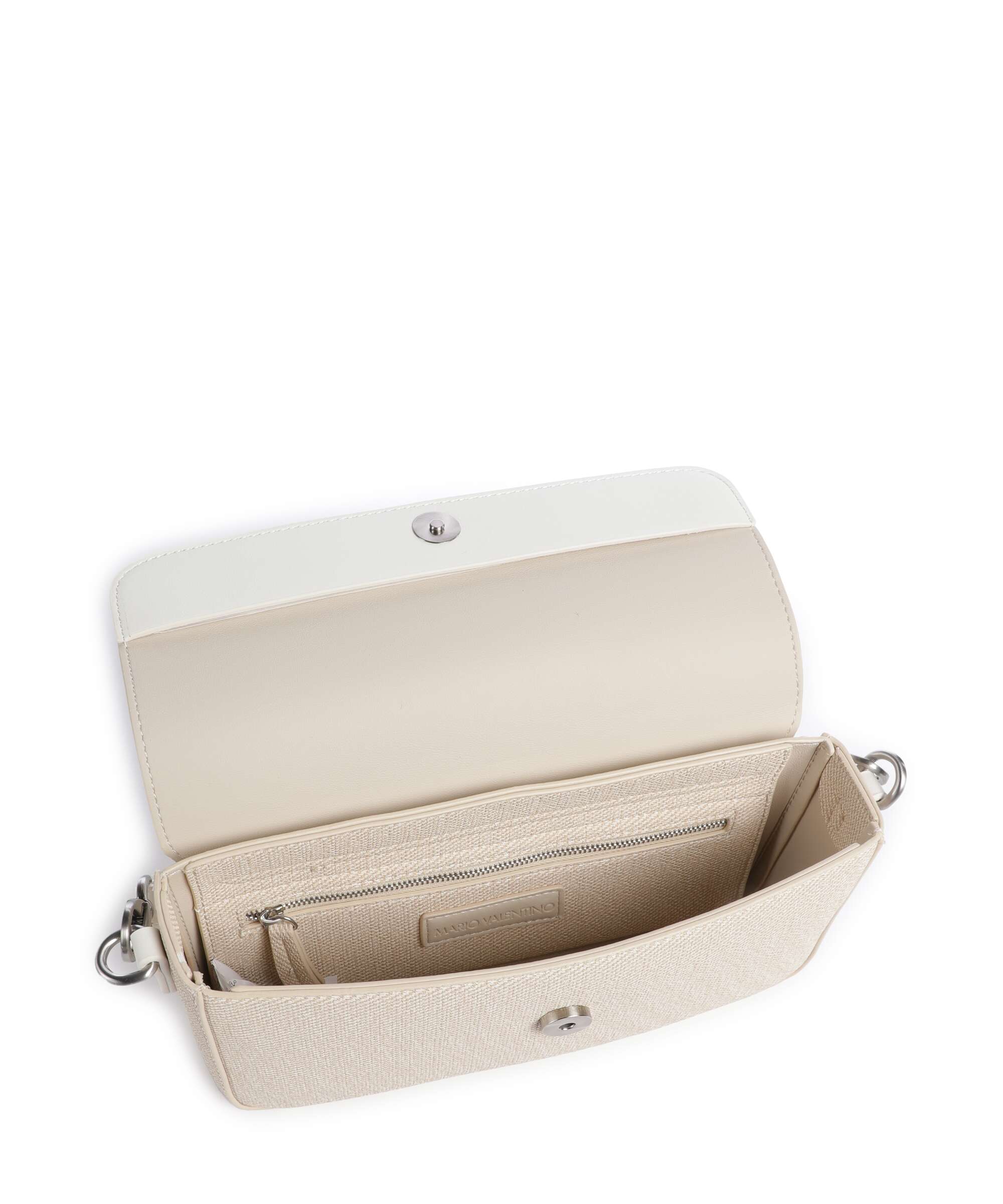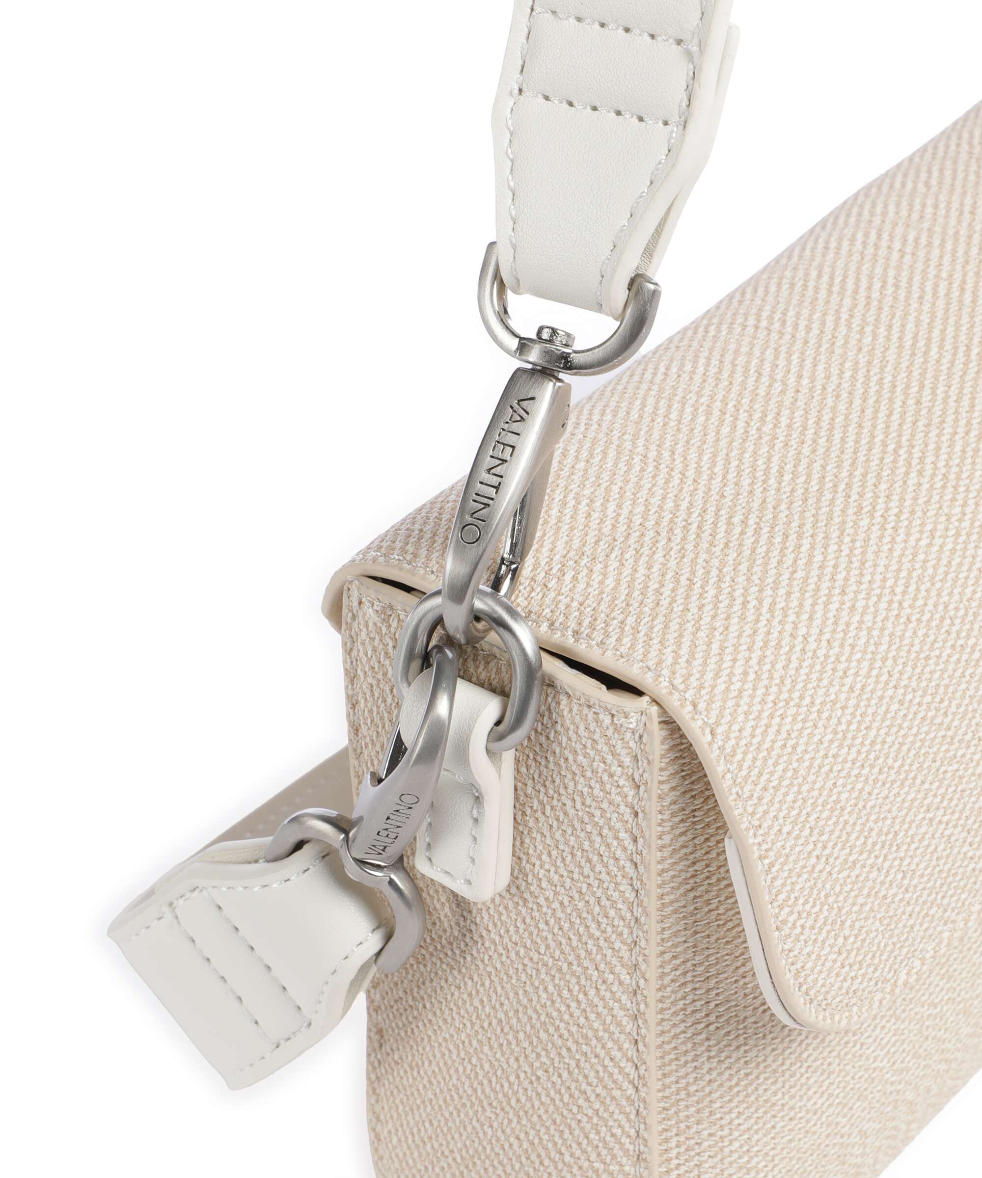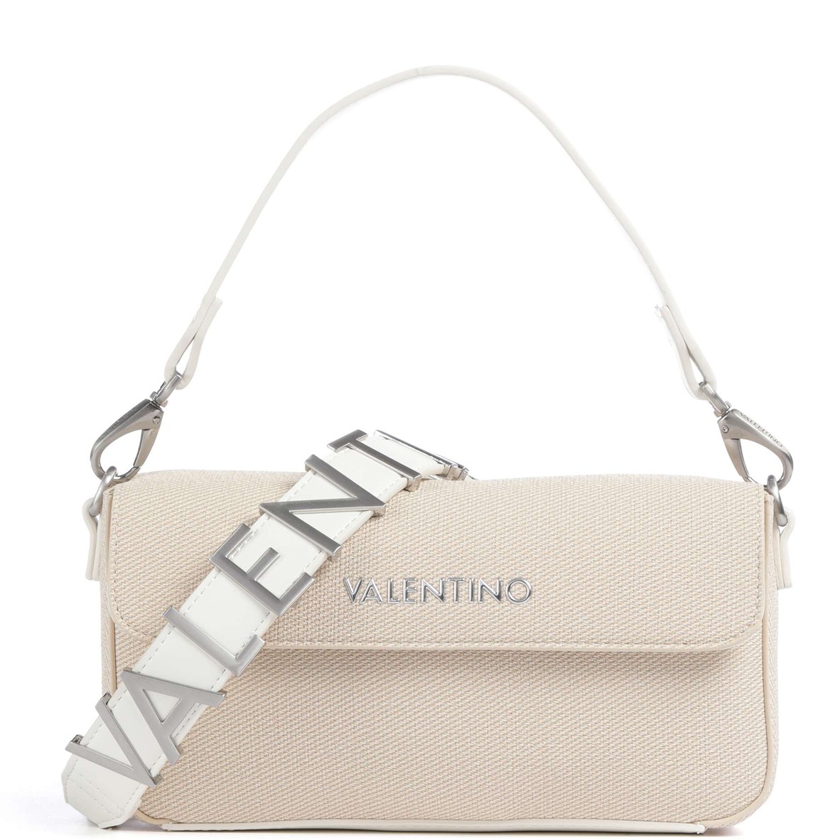 - Pega de ombro amovível: Uma alça branca curta para levar a mala junto à axila, seguindo a tendência estética dos anos 90/2000.