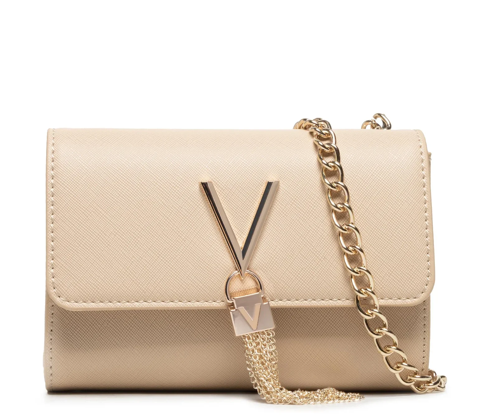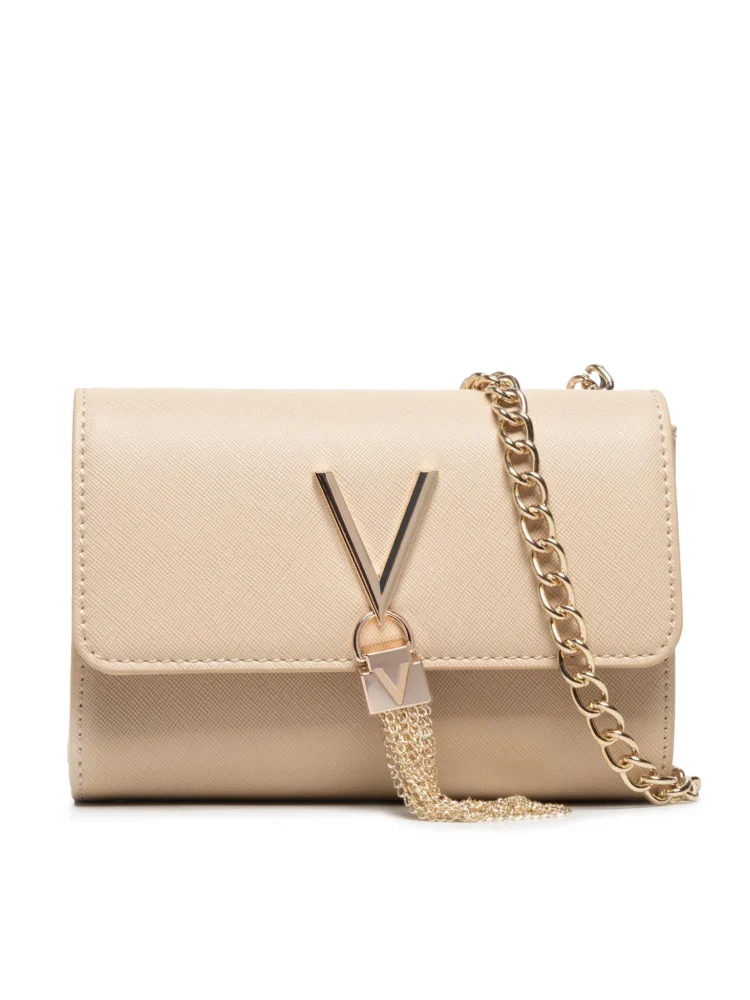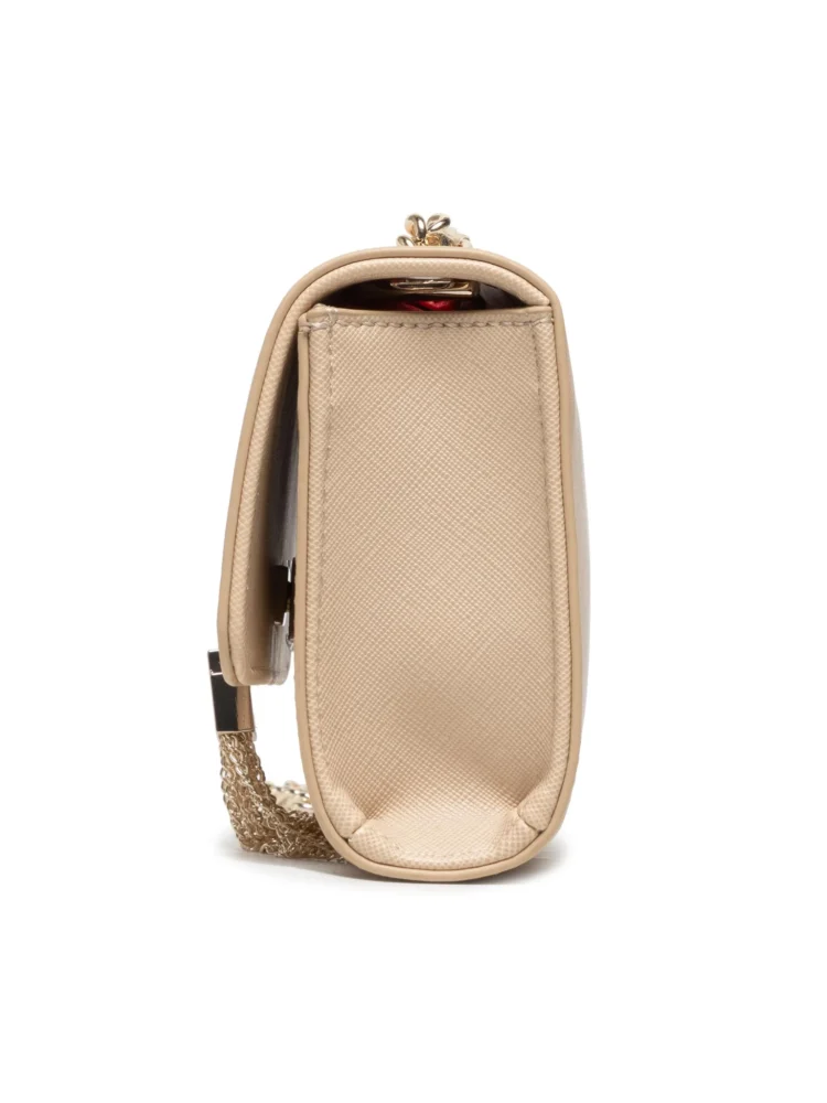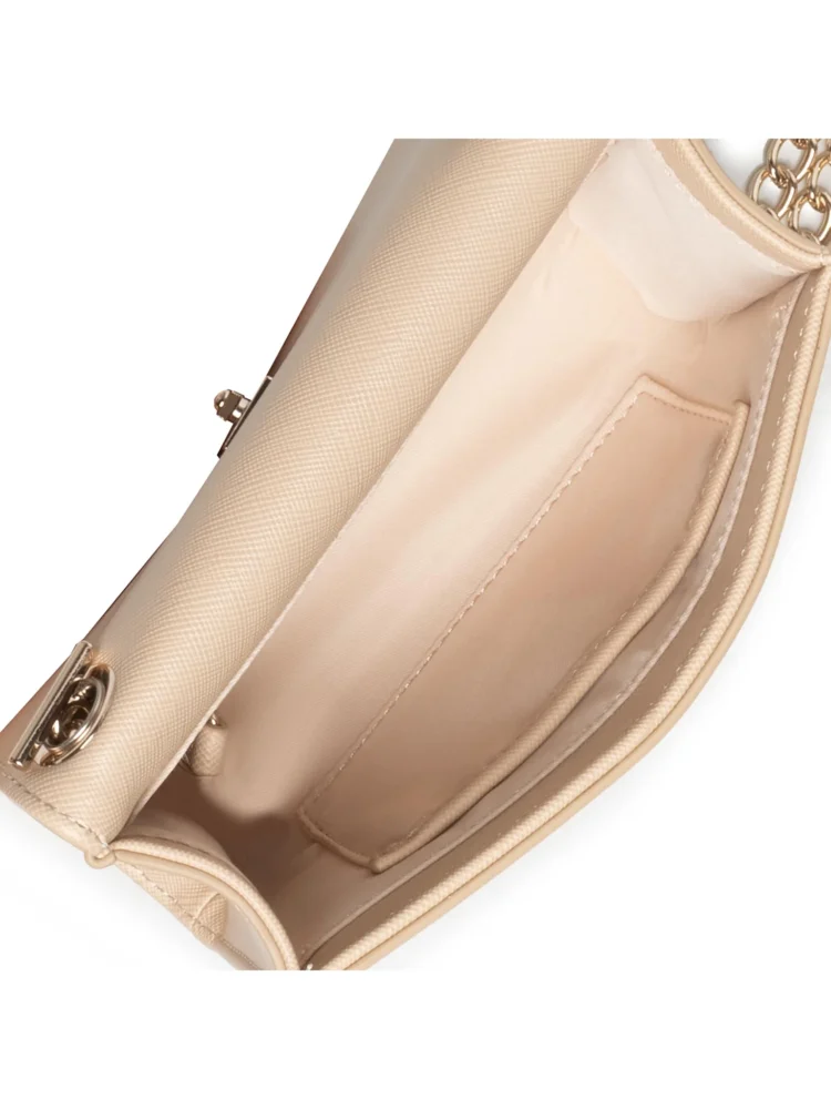 Mala de ombro em corrente, 1 bolso interior, 1 bolso para cartões, pormenores em contraste, fecho de botão, logótipo