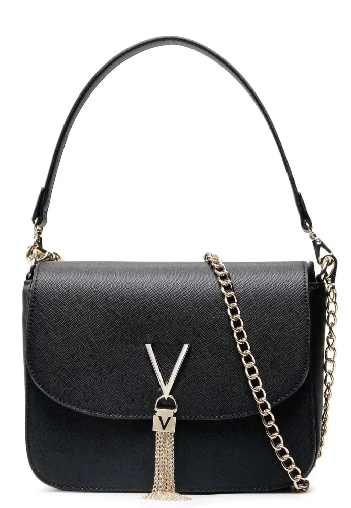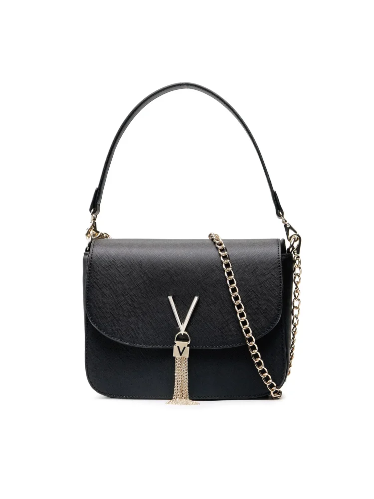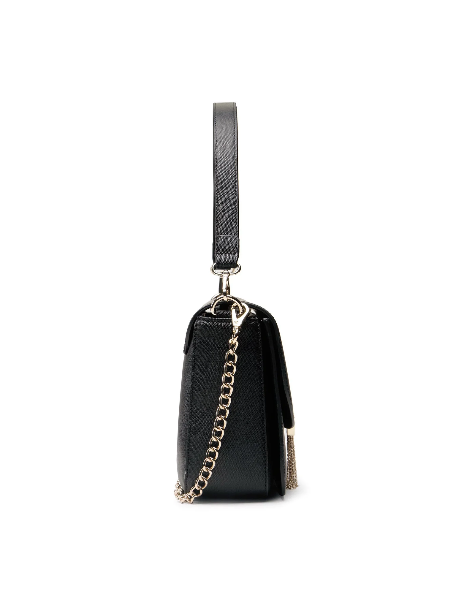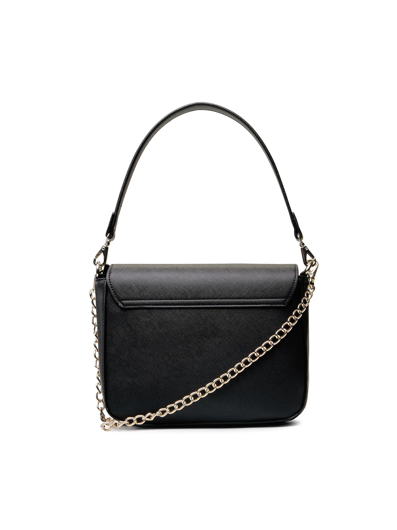 Mala 1 pega de ombro amovível, alça de ombro em corrente amovível, 1 bolso exterior, 1 bolso interior, 1 bolso para cartões, pormenores em contraste, fecho de correr e íman, logótipo