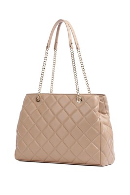 Mala de ombro , 2 alças e corrente , 2 compartimentos , 1 bolso interno central, 1 bolso interno , espaços internos para telemóvel , fecho com ziper ,detalhes contrastantes , logotipo