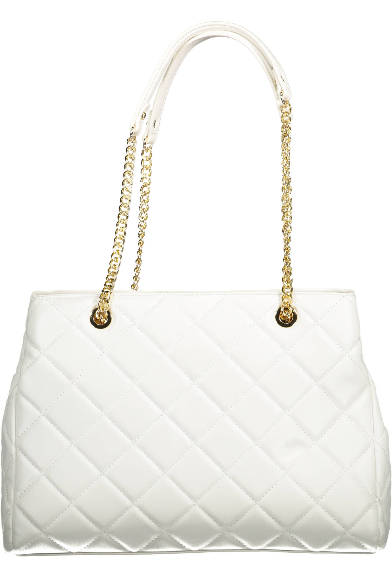Mala de ombro , 2 alças e corrente , 2 compartimentos , 1 bolso interno central, 1 bolso interno , espaços internos para telemóvel , fecho com ziper ,detalhes contrastantes , logotipo