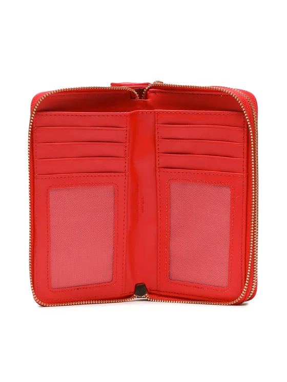 Carteira com 2 compartimentos separados, espaços duplos tamanho cartão, bolsa de moedas, detalhes contrastantes, fecho zíper, logótipo.