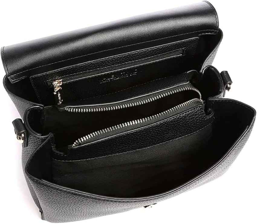 bolsa 1 alça de ombro removível, 2 compartimentos, 1 bolso interno central, 1 bolso interno, detalhes contrastantes, fecho de zíper e ímã, logotipo