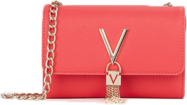 Bolsa de ombro em corrente, 1 bolso interior, 1 bolso para cartões, pormenores em contraste, fecho de botão, logótipo