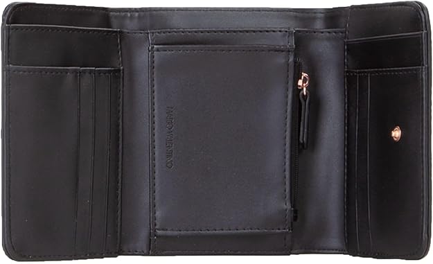 Carteira com 3 compartimentos, porta-moedas, duplo espaço para cartão, fechamento com zíper e automático, logotipo, reciclado