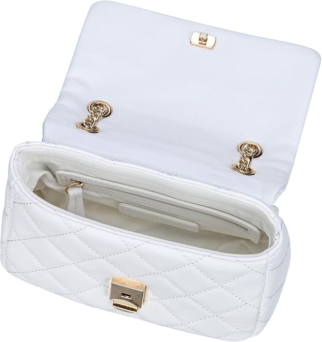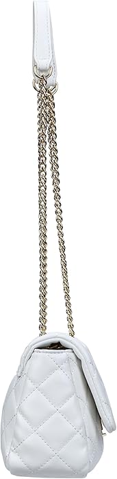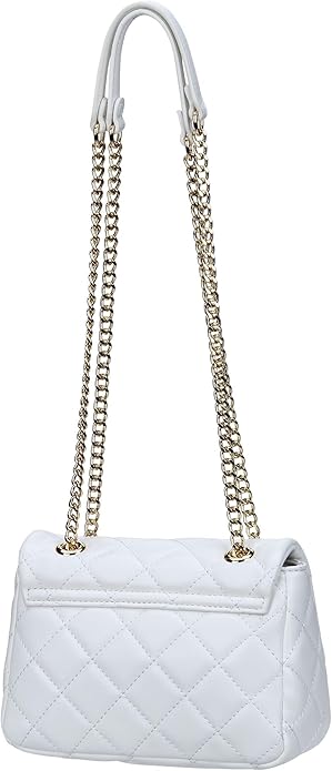 Bolsa de ombro com corrente, 1 bolso interno, detalhes contrastantes, fecho com clipe, logo, reciclado