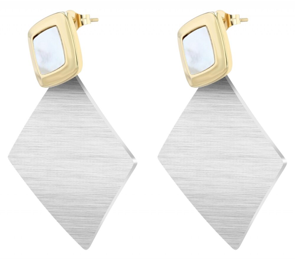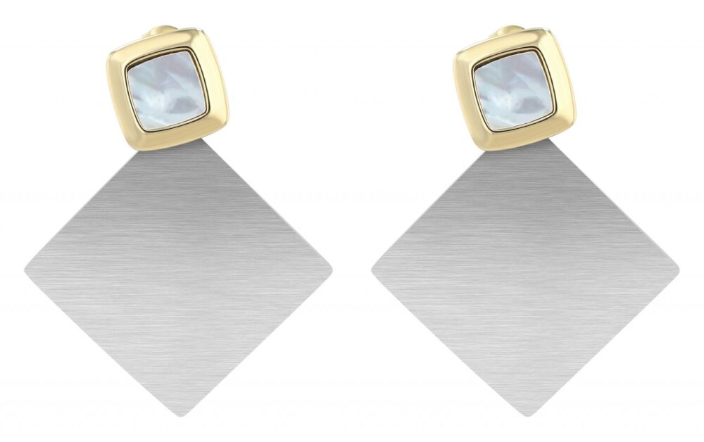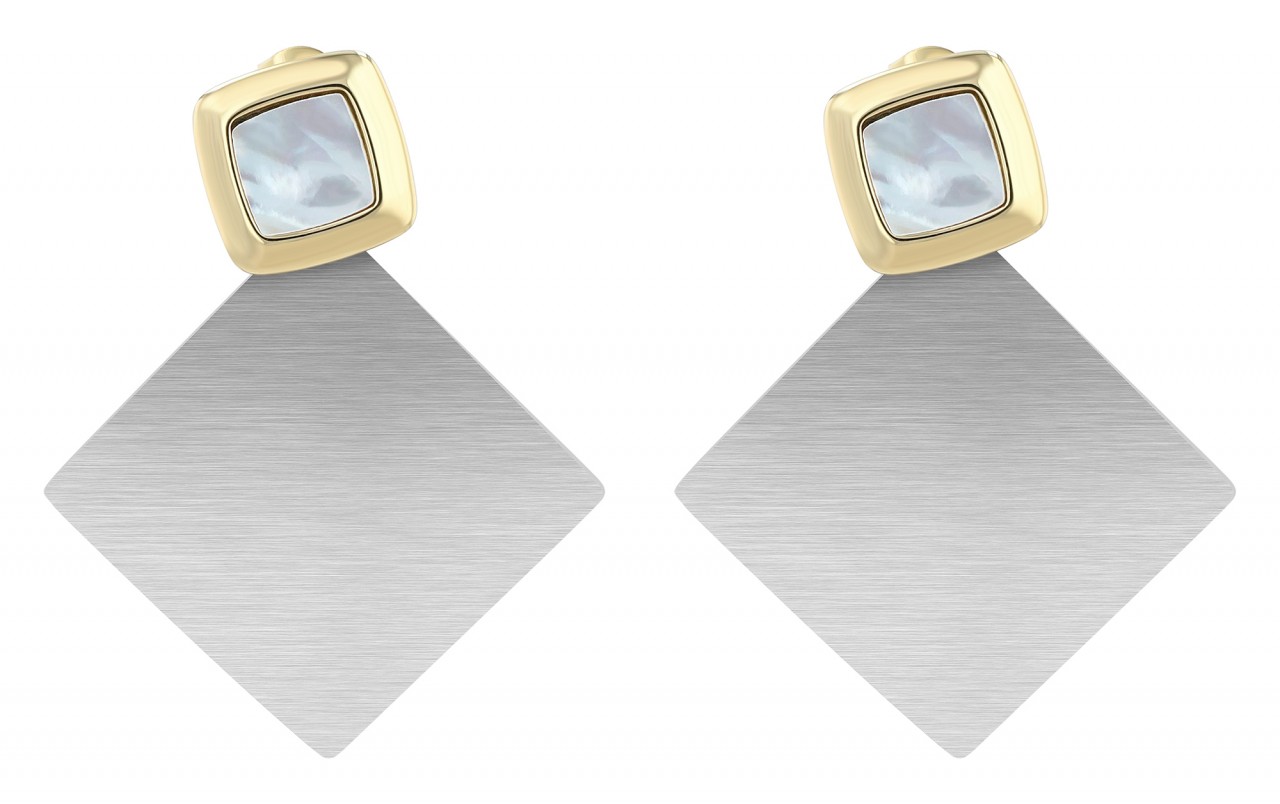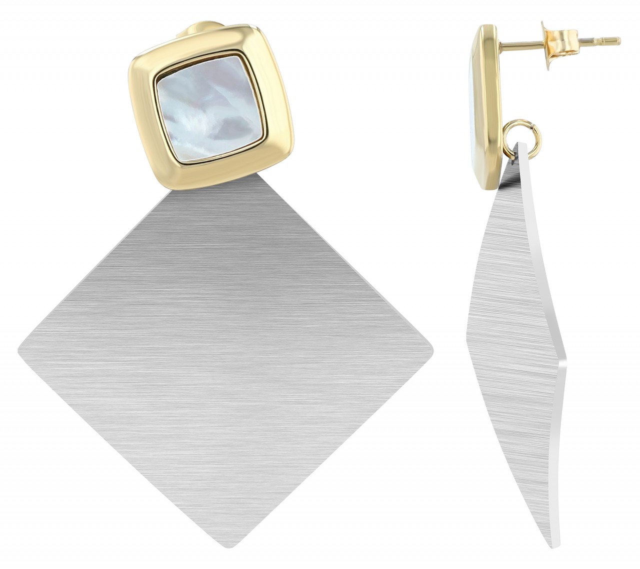 Um must-have absoluto para quem aprecia um design minimalista, uma vez que estes brincos em aço inoxidável combinam um estilo moderno com uma elegância intemporal. O pino quadrado impressiona com o seu elegante acabamento em madrepérola numa moldura dourada, enquanto o pendente prateado transmite uma certa sofisticação com a sua forma transparente. Este acessório é um companheiro versátil que complementa qualquer look, tanto no quotidiano como em ocasiões festivas. O fecho de pressão oferece uma fixação segura e o máximo conforto de utilização e, graças ao seu aspeto (bicolor), este brinco é um companheiro versátil.